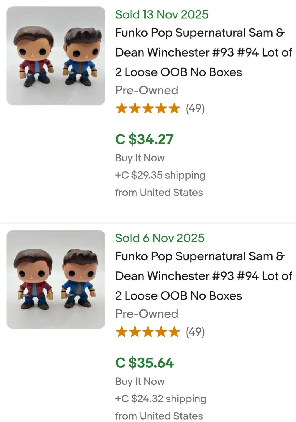 Supernatural Sam #93 & Dean Winchester #94 FUNKO POP VINYL