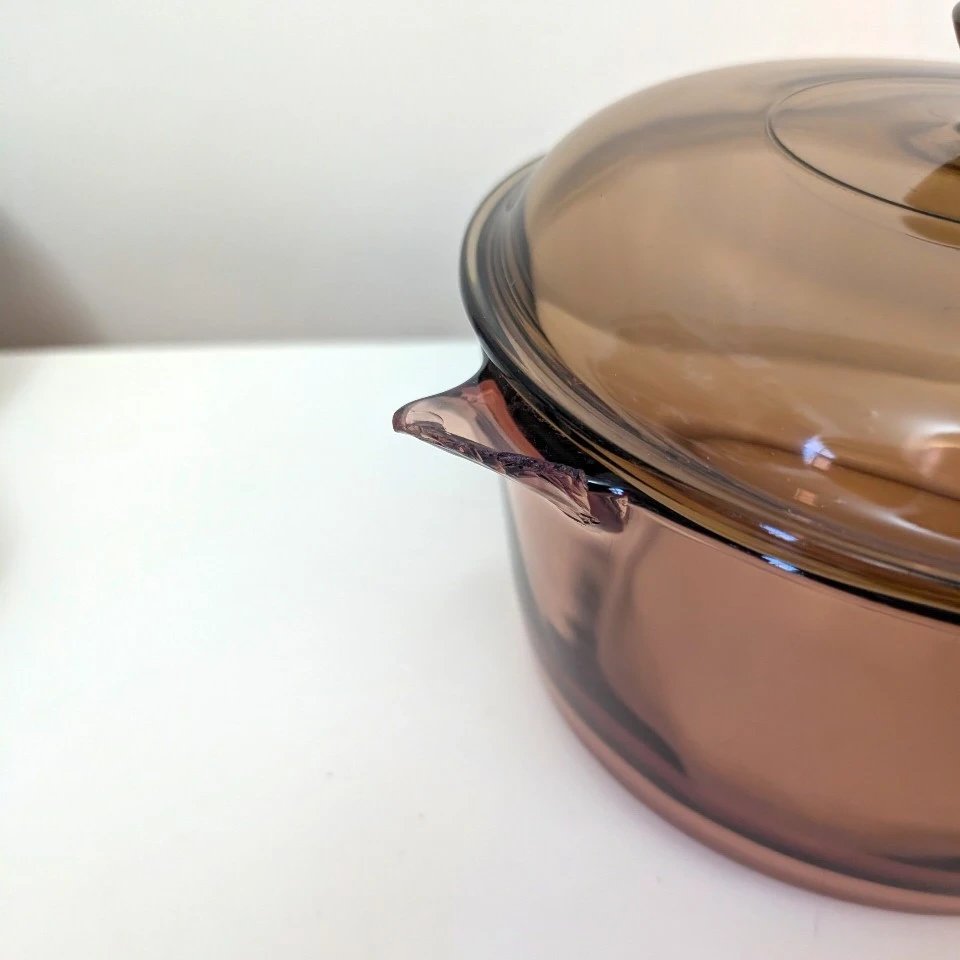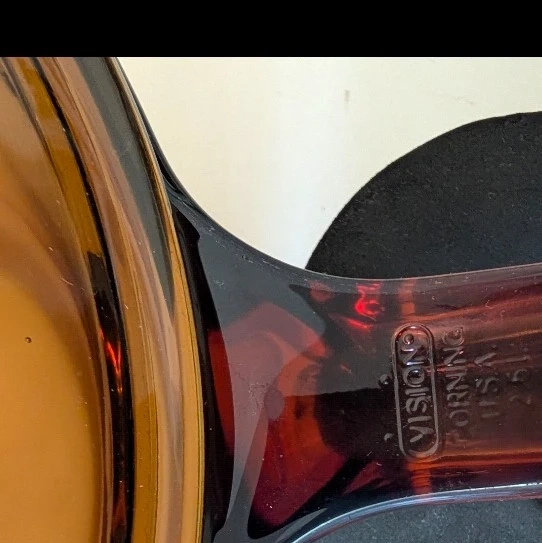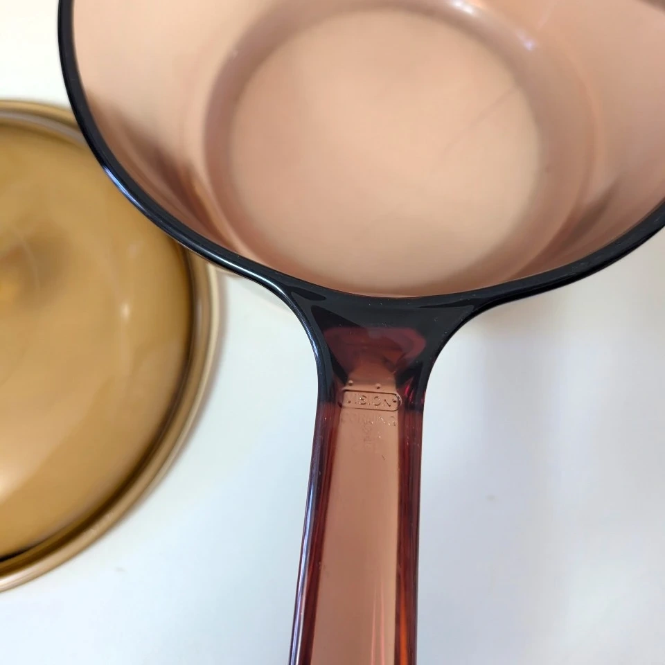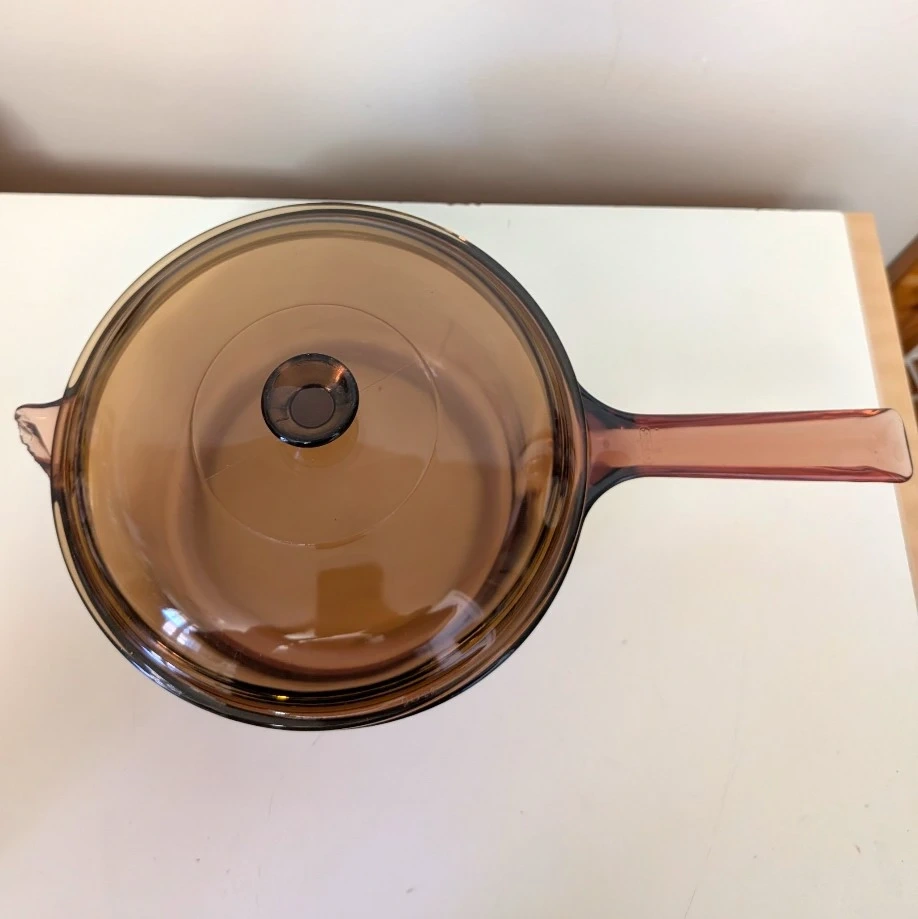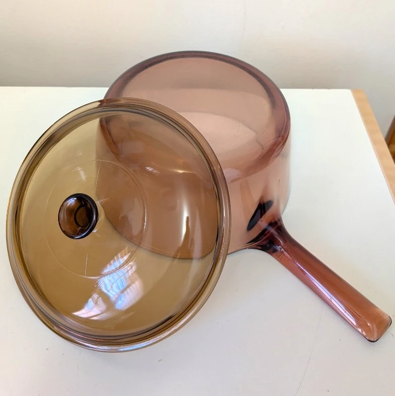 Vintage Corning Vision Ware 2.5L Amber Glass Pot Sauce Pan with Lid