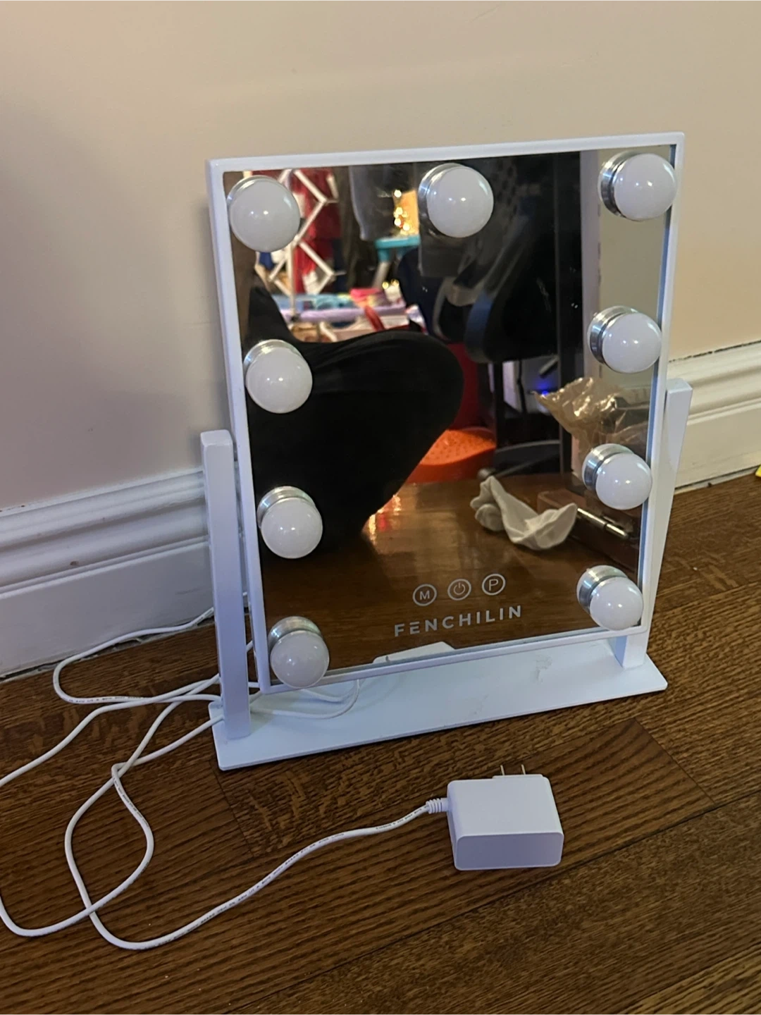 This FENCHILIN lighted makeup mirror features 9 LED bulbs for bright illumination.