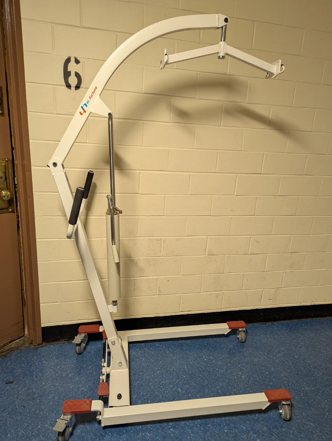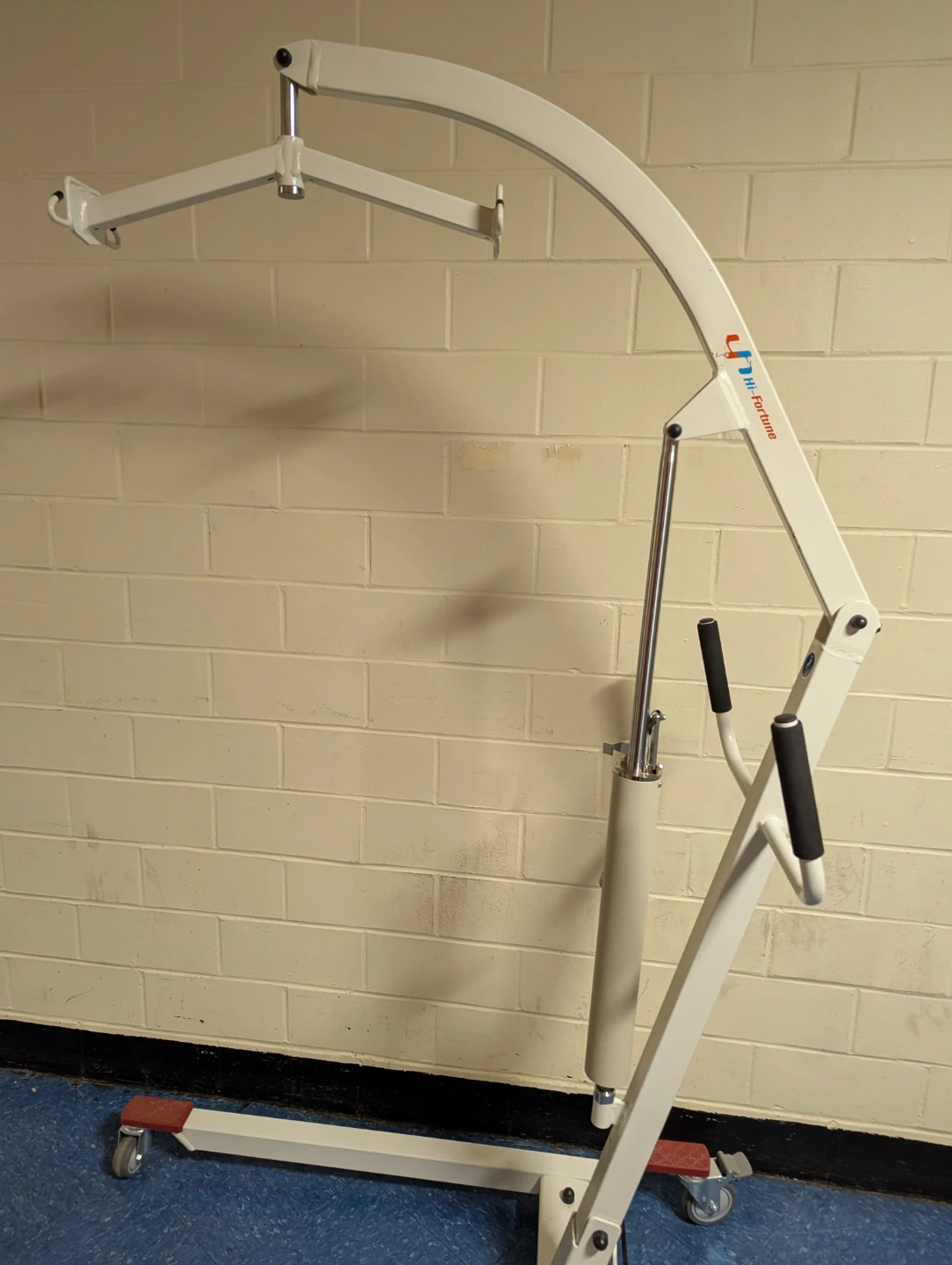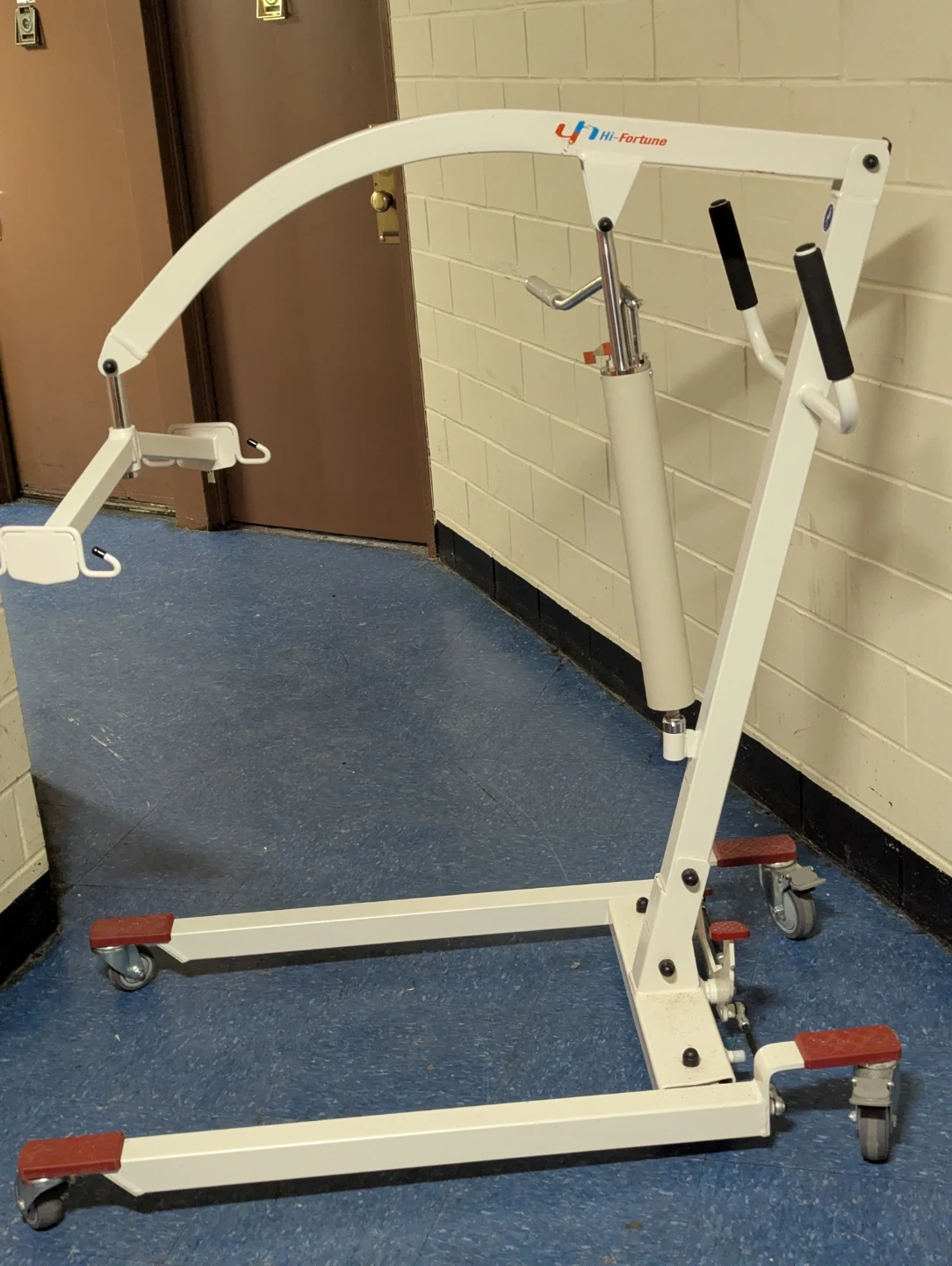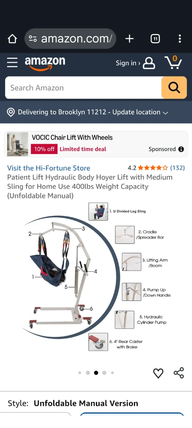 This VOCIC patient lift chair features wheels for easy mobility and a 400lbs weight capacity. It's designed for home use and has a hydraulic lift mechanism. The chair is foldable for convenient storage. It comes with a divided leg sling.