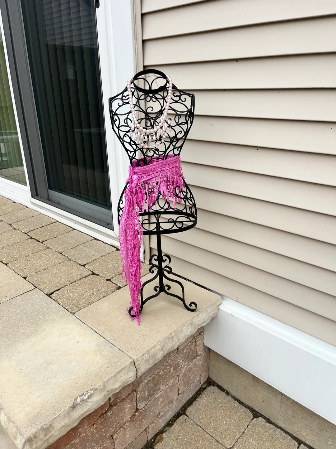 THIS SMALL BLACK MANNEQUIN MEASURES 10W X 29H SCARF & NECKLACE NOT INCLUDED. I LIVE NORTHWEST SIDE OF CHICAGO BY CANFIELD AND HIGGINS 60631 X POSTED