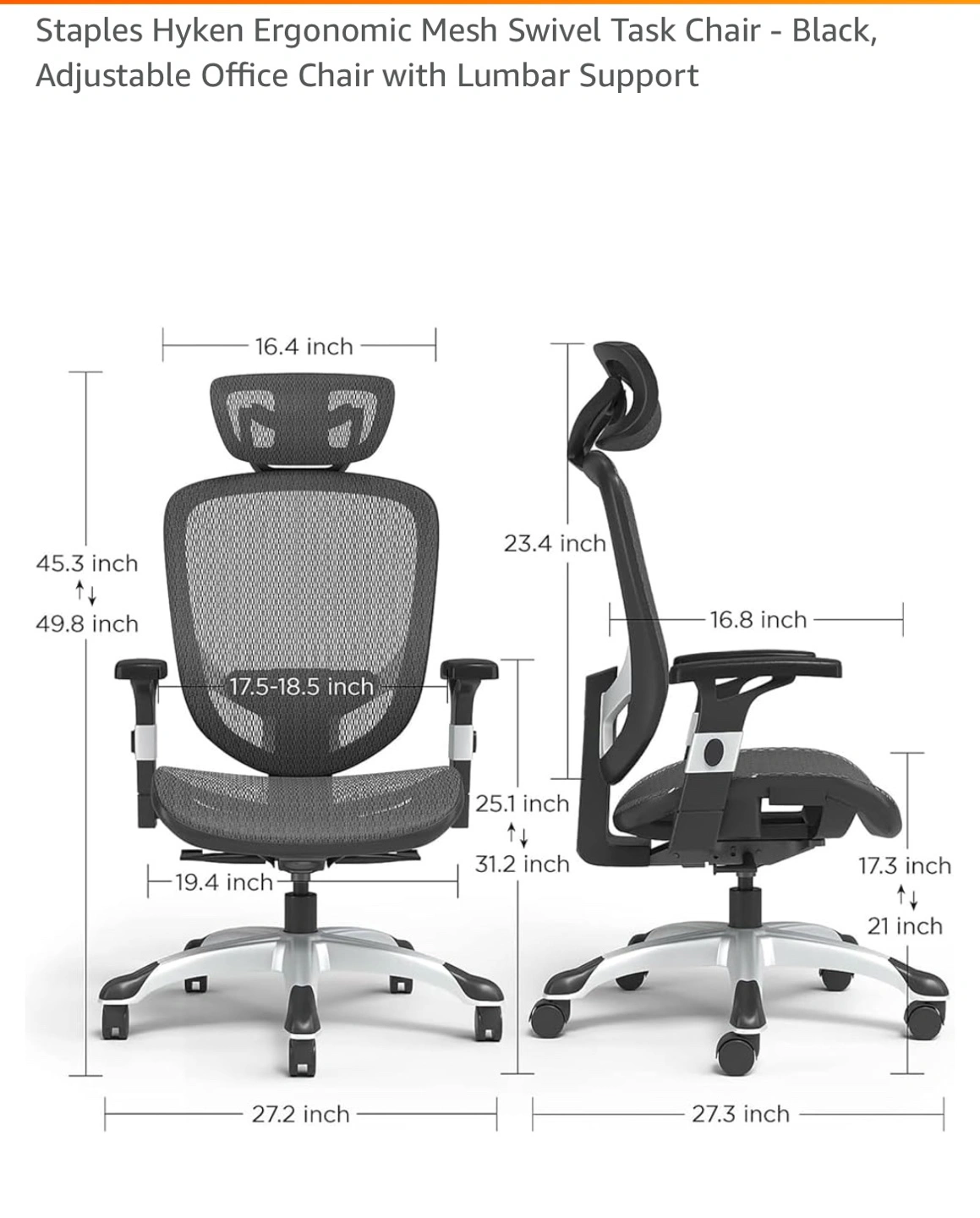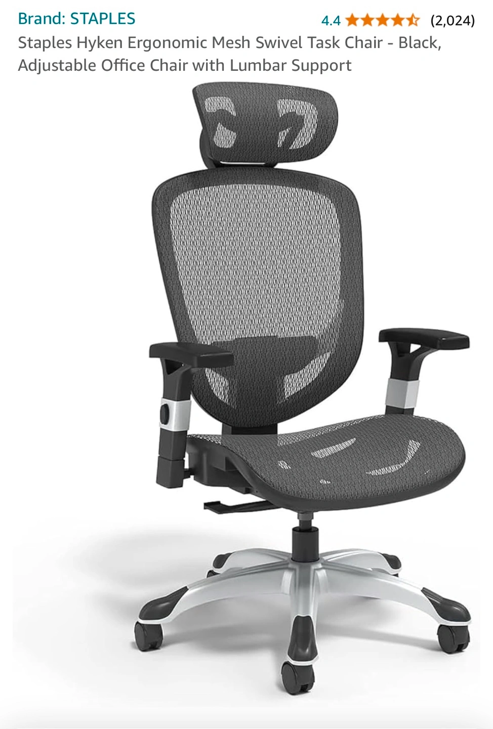 Staples Hyken Ergonomic Mesh Swivel Task Chair