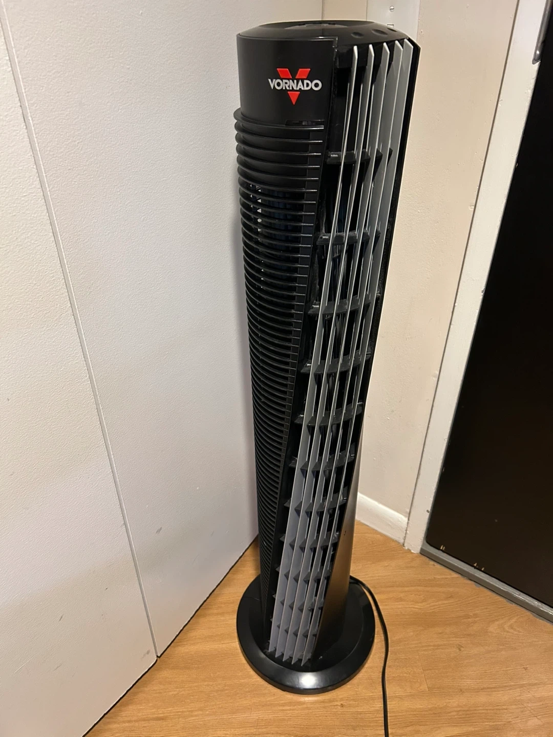 The Vornado 154 is a powerful, non-oscillating tower air circulator featuring proprietary V-Flow technology to move air up to 80 feet, covering roughly 400 square feet. It features 4 speed settings, a 1–8 hour timer, a magnetic remote, and a sturdy, wobble-free base. Ideal for large rooms.