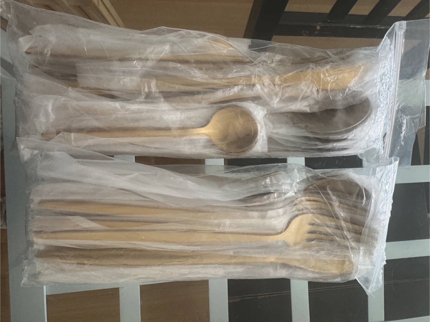 48pc set of gold cutlery + small shoe rack