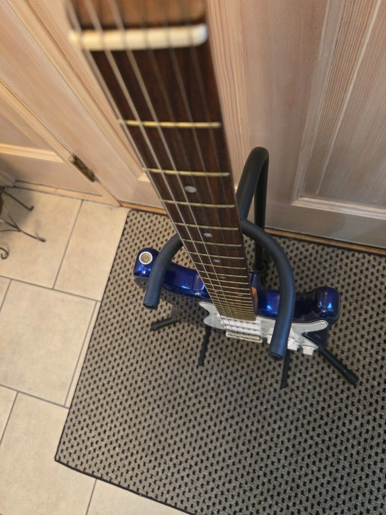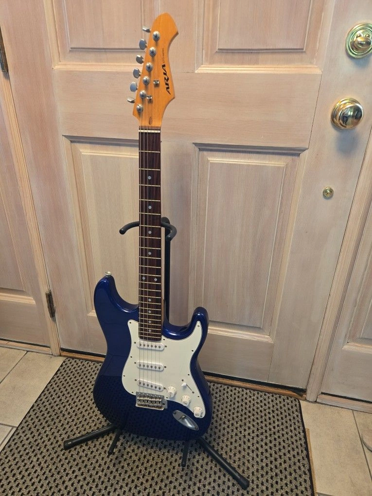 Very clean vintage guitar, plays well with a nice Rosewood Fretboard. 003 - Deluxe model with matte chrome hardware and Rosewood fretboard. Cool blue metallic finish that turns dark or to a purple blue in the light. Guitar Trades Considered. Body Color: Cobalt Blue Metallic Size: 4/4 Right Or Left Handed: Right-handed Type: Electric Brand: Aria