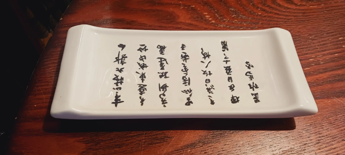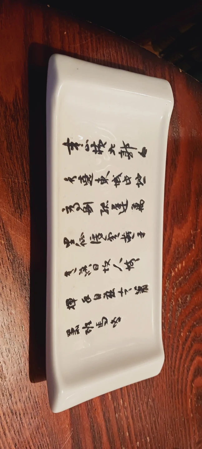 New !! This is a white ceramic dish designed for sushi. It features black Asian calligraphy on the surface. Great for sushi or dim sum meals! 8"×4". New !! ALL MY PRICES ARE NEGOTIABLE !!