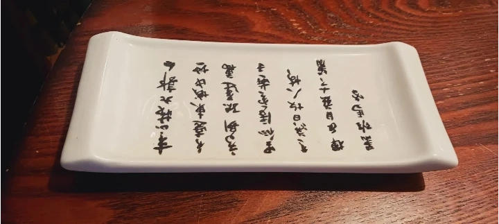 New !! Asian Calligraphy white ceramic sushi plate