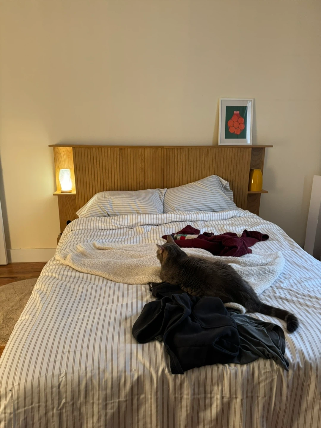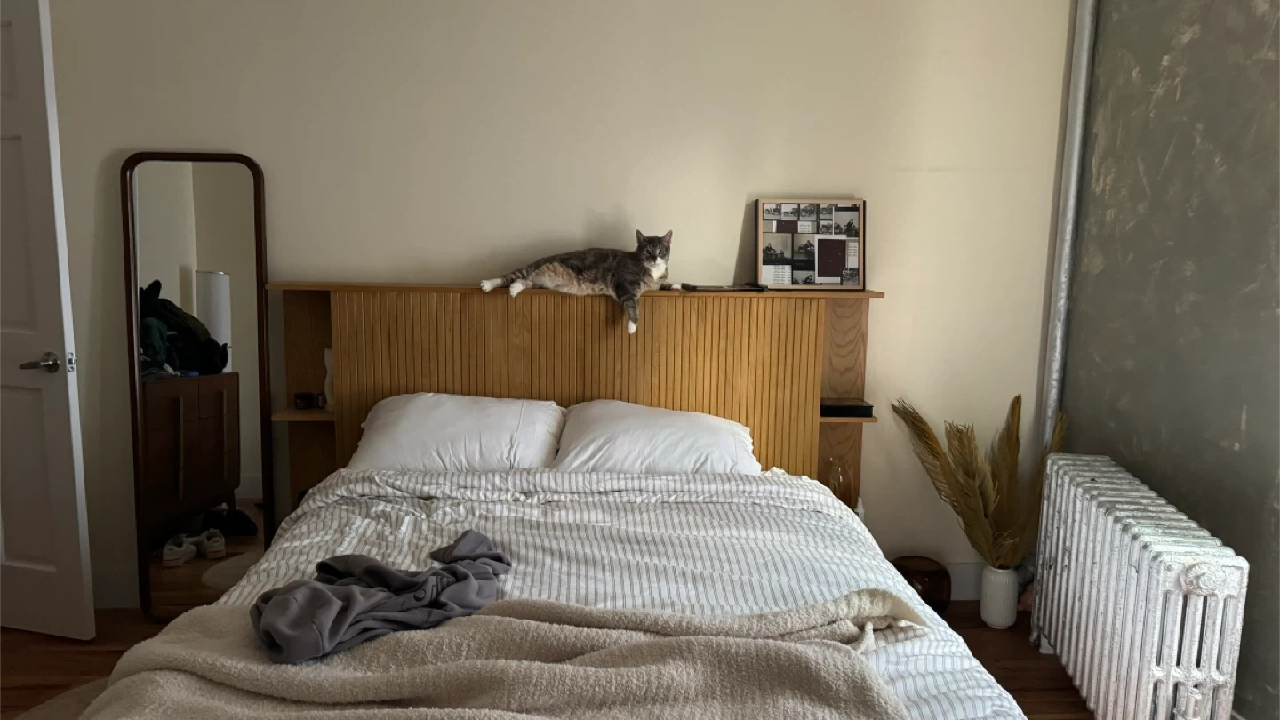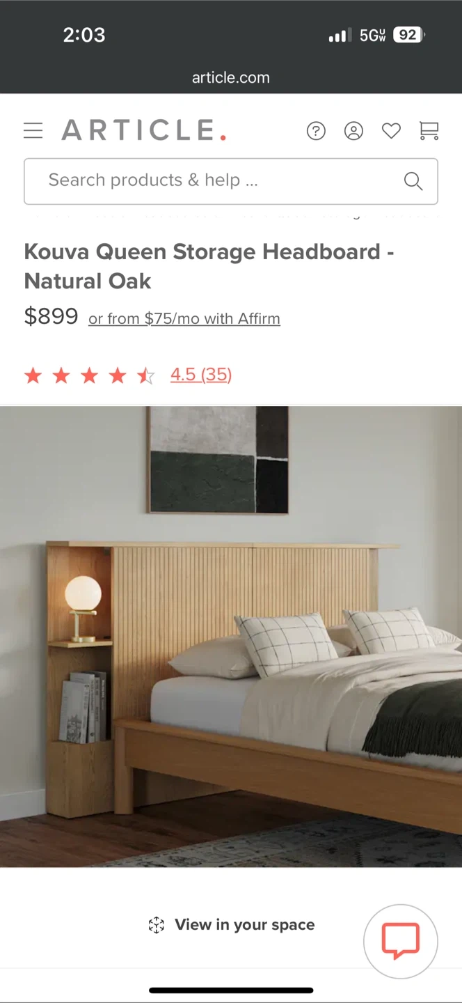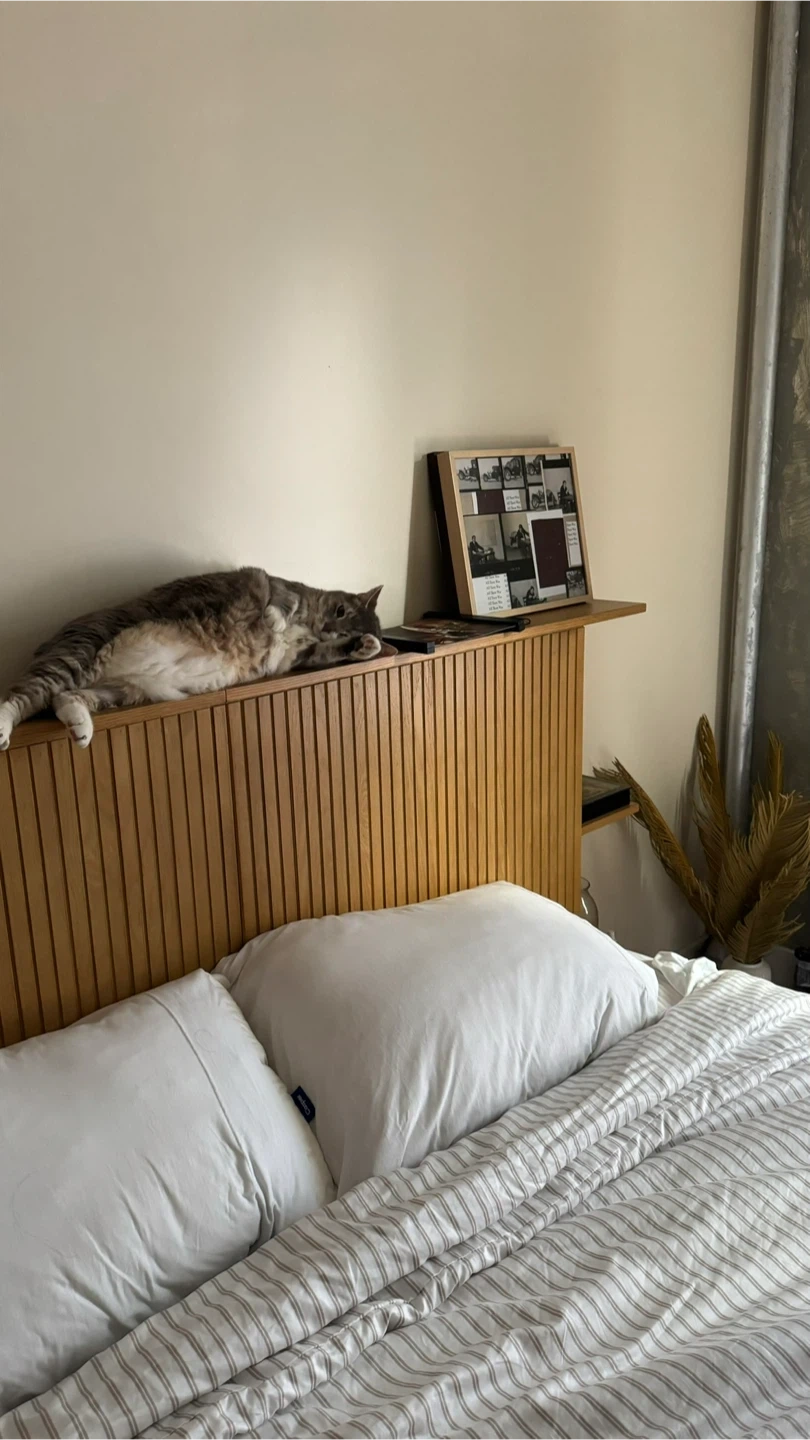 Selling an Article Kouva Queen Storage Headboard in Natural Oak. It's in great condition, basically new as it remained mostly untouched and unmoved. It can fit in my elevator down my building, and since it’s only two pieces, you can take apart to bring it in a car or the subway, etc. it’s not crazy heavy but it’s a two person job for sure.