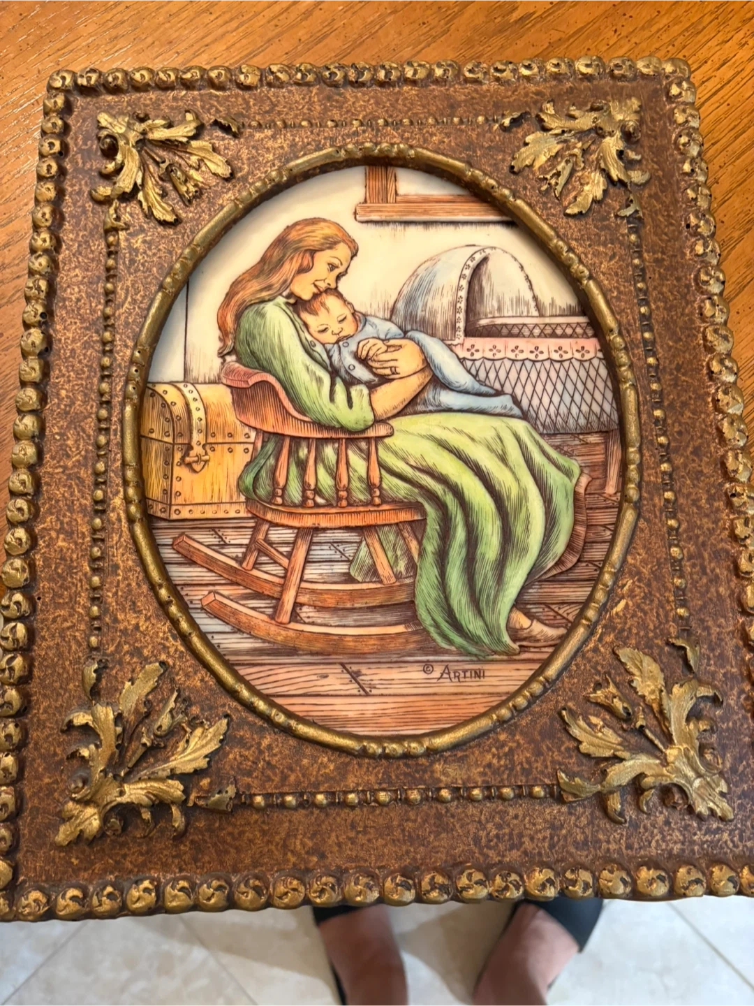 Selling a hand-painted Artini Sculpture engraving four dimensional featuring a mother and baby. This piece is a genuine Artini sculpture engraving, crafted from nature's most durable materials. It's in good condition and ready to add a touch of charm to your home