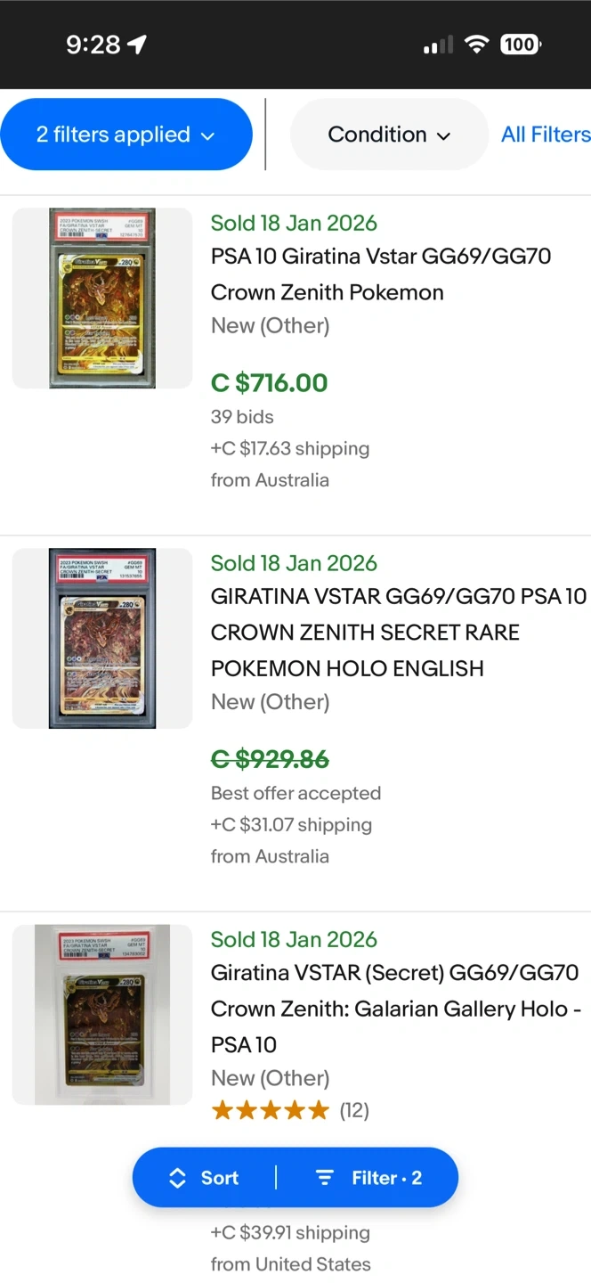 Giratina VSTAR SR PSA 10 Crown Zenith
