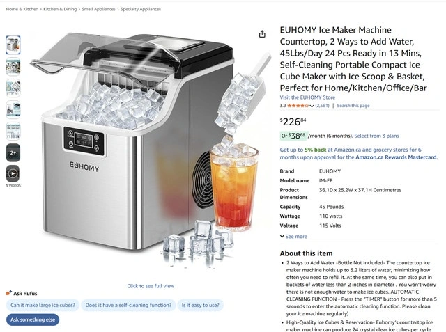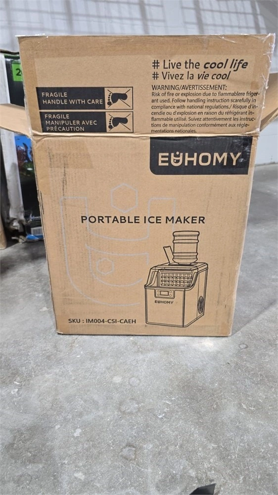 Brand new and complete in an open box. Pickup is near Kipling and Evans. 2 Ways to Add Water - Bottle Not Included. The countertop ice maker machine holds up to 3.2 liters of water, minimizing how often you need to refill it. At the same time, you can also put in buckets of water less than 2 inches in diameter. You won’t worry there is not enough water to make ice cubes. AUTOMATIC CLEANING FUNCTION - Press the "TIMER" button for more than 5 seconds to enter the automatic cleaning function. Please clean your ice machine regularly. High-Quality Ice Cubes & Reservation- Euhomy’s countertop ice maker machine can produce 24 crystal clear ice cubes per cycle (every 12 to 18 minutes). That means you can make up to 44 pounds of ice cubes every 24 hours. Best of all, you can adjust the thickness of the ice cubes according to your needs, letting you create perfect drinks with solid cubes. Ice Making Reservation - You can set an appointment to make ice cubes with our counter ice maker machine. Press the "TIMER" button once and set the reservation time. LCD & Digital Display - Euhomy ice machine holds an LCD display which makes the ice machine easier to use. Features an easy-to-read push-button digital design for comfortable use. Timer with up to 8-hour delay. Offers on-time ice production. When there is not enough water in the water tank, the indicator will light up, reminding you to add more water. Or when the ice bucket is full, the ice maker will remind you to remove the extra ice cubes, so the ice maker can start to make more ice. Food-Safe & Super Quiet & Save Money - The material we use for the ice maker is Food-Safe and anti-corrosion. Therefore don’t be worried when you are using the countertop ice maker. Around 45db sound level won’t disturb you even your pets. What's more, you'll save more money while enjoying refreshing drinks at home instead of tripping to the convenience store for ice any more. Cash accepted.