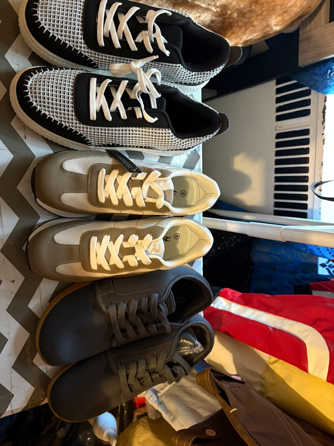 Selling a collection of assorted sneakers! There are three pairs in the picture, each with a unique style and color. The sizes vary, so please inquire for specific measurements. They appear to be in good condition and ready for a new home!