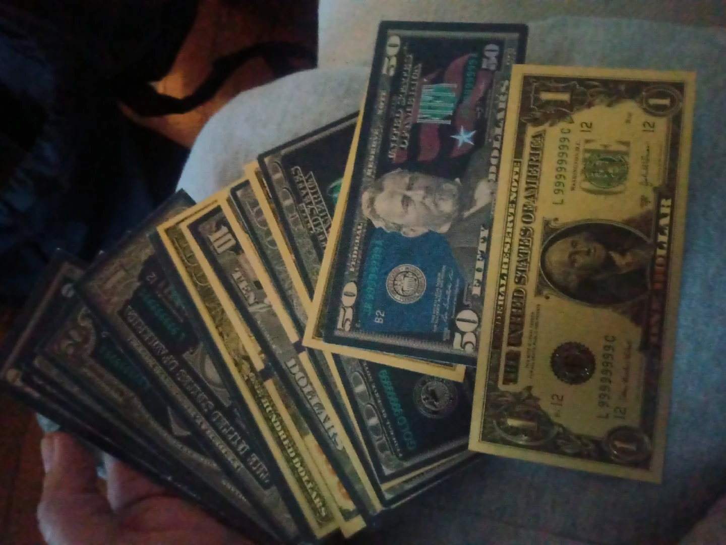 60Here's a collection of US dollar bills, including a fifty-dollar bill, a one-dollar bill, ten-dollar bills, twenty-dollar bills, and one-hundred-dollar bills, for collecting or gifts (not for spending)