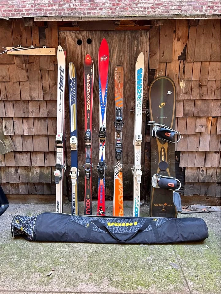Assortment of classic skis all different sizes. TAKING BEST OFFERS!! - K2 STUNTMAN Evil Knievel - K2 7.8 composite Trapezoid skis - Dynastar Legend 8000, look bindings - Volki expandable Ski bag, not sold anymore with this design - Dynastar Big Max 3 downhill skis - K2 Killy Compact skis - Rossignol hybriDX WIDE I have more picture of each of the skis I ’m willing to sell them separately. Each ski and board come with bindings already attached. Willing to sell all or multiple together for discount