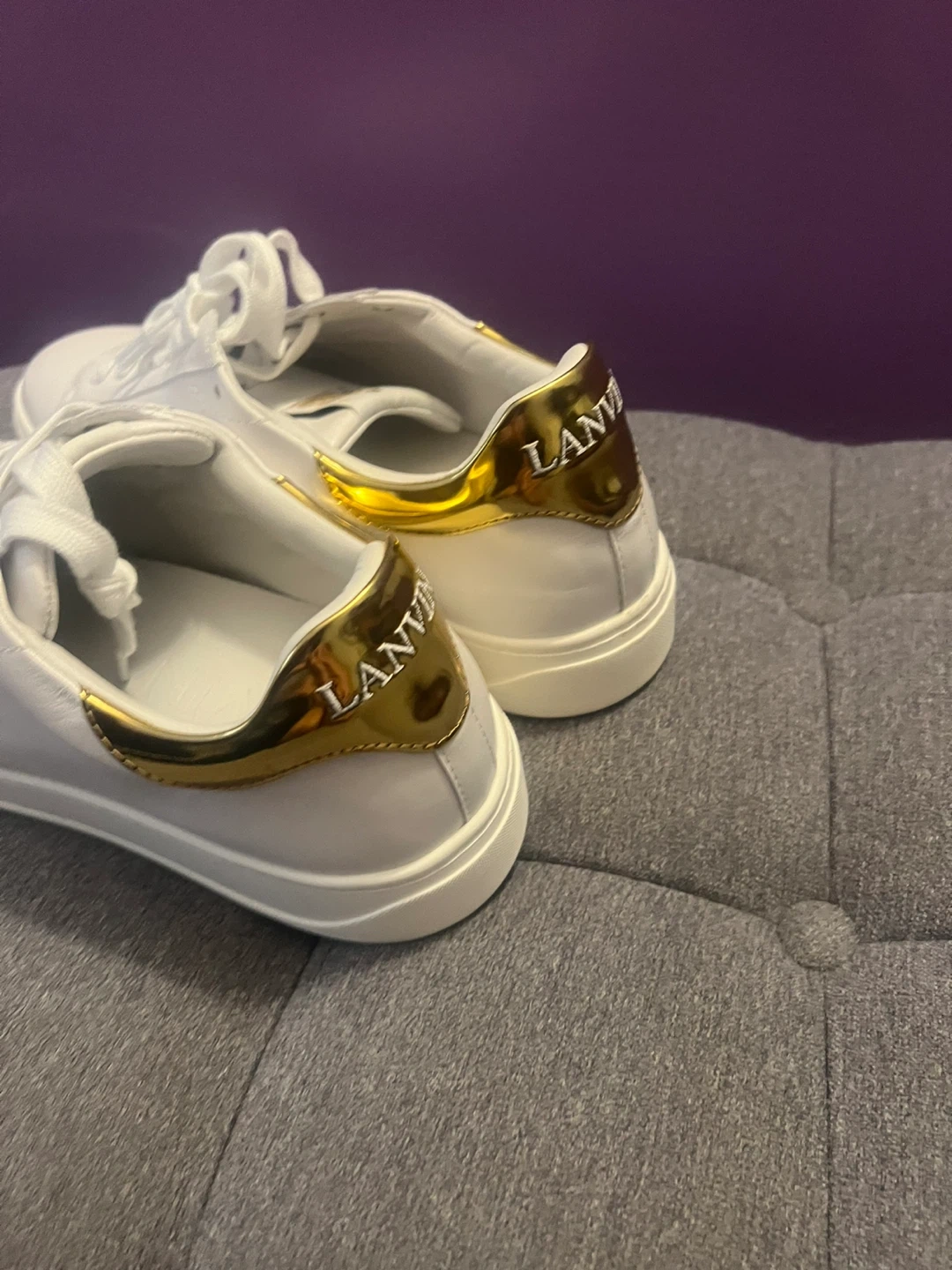 Lanvin White Leather Low Top Sneakers with Gold Heel Detail