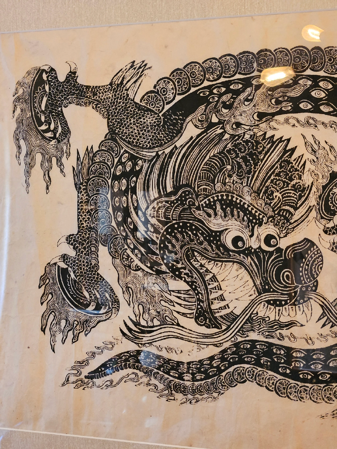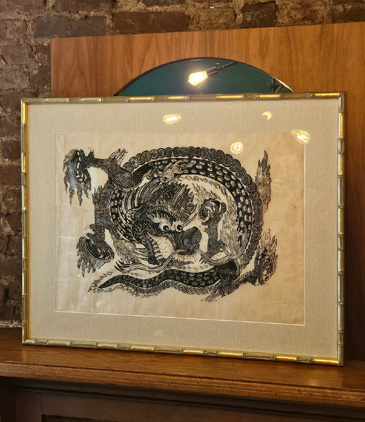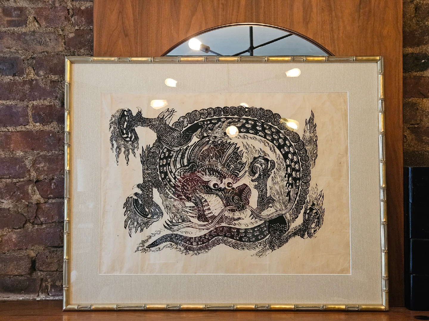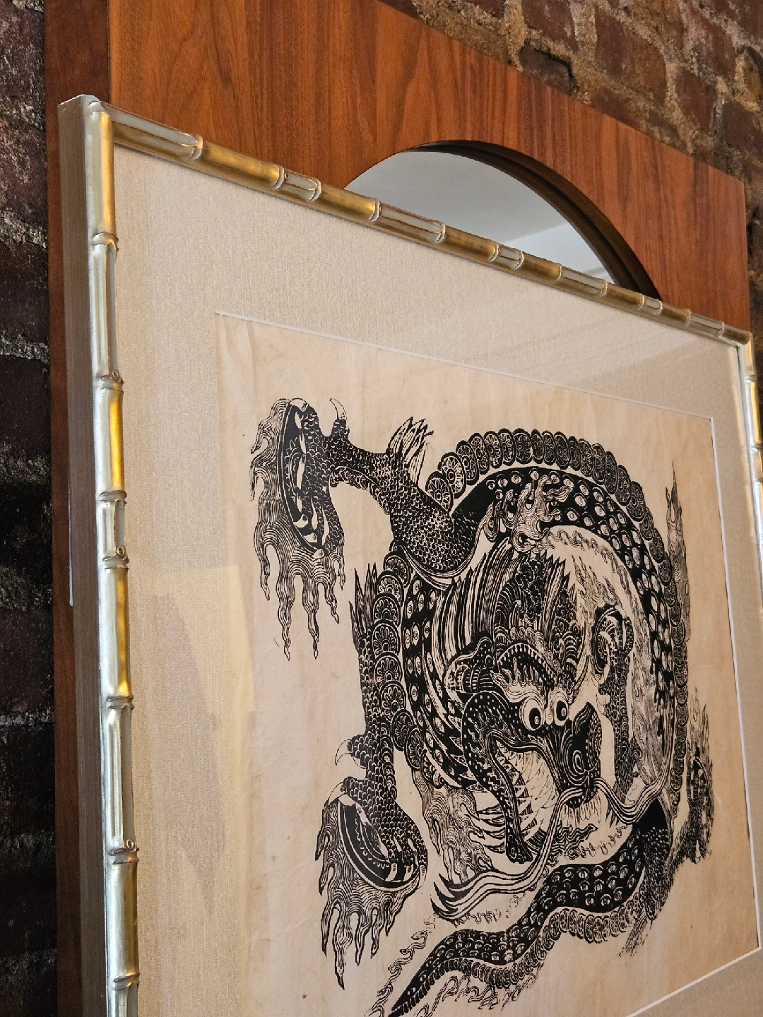 86Authentic framed artwork of a spiritual dragon - a timeless piece passed down from my grandmother and kept in our family for generations. It’s now looking for a new home where it can be equally appreciated! Come and get it, art lovers! Size: 24" × 32" (H × W) Cash and carry.