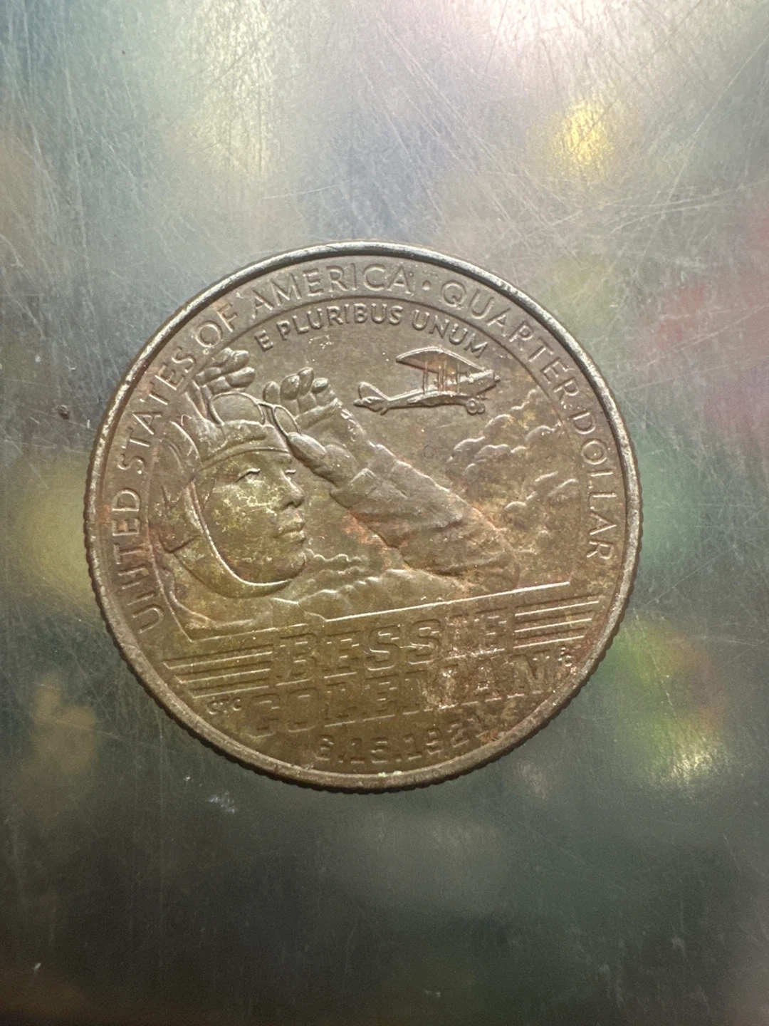 This is a United States Quarter Dollar coin featuring Bessie Coleman. It's dated 2023. A quarter dollar coin.