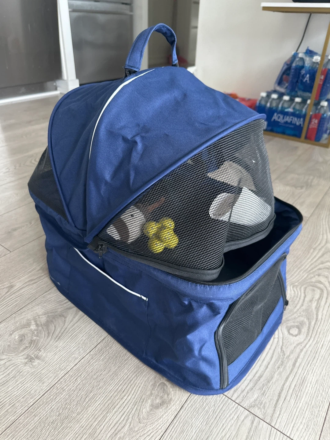 Selling a pet carrier backpack in blue! It's in great shape and ready for your furry friend's adventures. Perfect for small dogs or cats, this carrier is lightweight and easy to carry. The mesh windows provide good ventilation and visibility for your pet. It also has a convenient handle on top for easy carrying