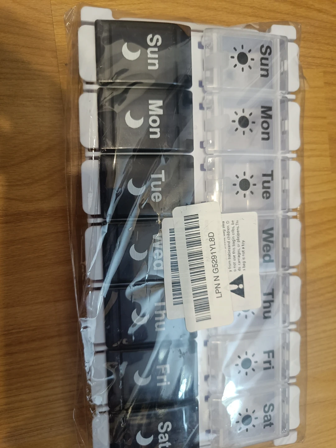 This is a 7-day pill organizer for morning and evening doses. Each compartment is clearly labelled with the day of the week. It's designed for easy access to your daily medication.