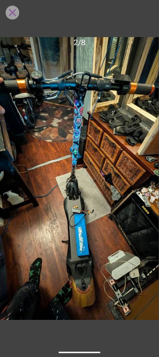 Selling a used electric scooter it need a new throttle, and controller..! It has some custom stickers on it, it has error code 2... throttle. as is .. fix it .. runs awesome and fast 1000w dual brushless motors.. new display and new charger.. my lose..