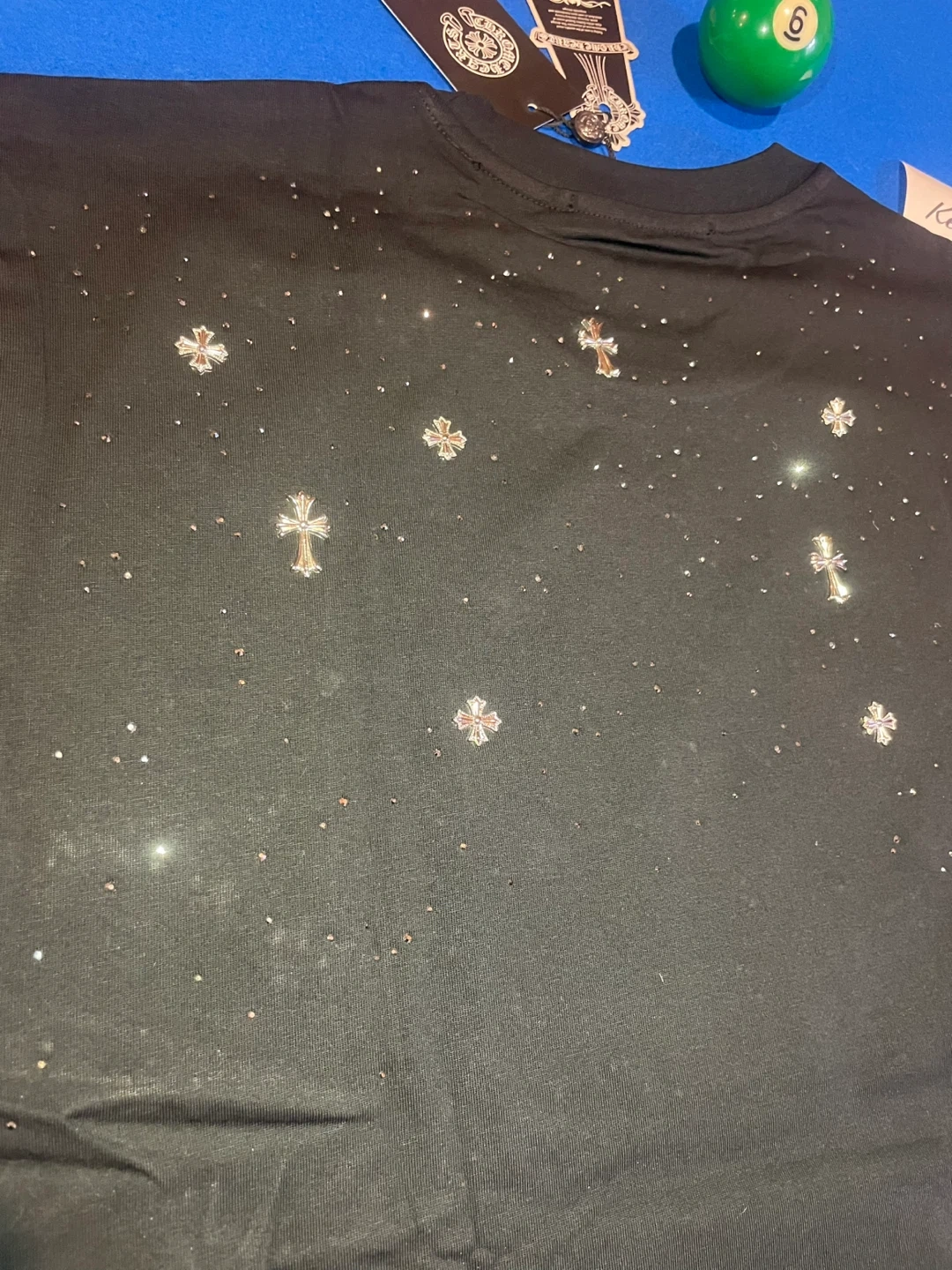 Chrome Hearts Rhinestone Tiny Cross Tshirt with Purchase Receipt