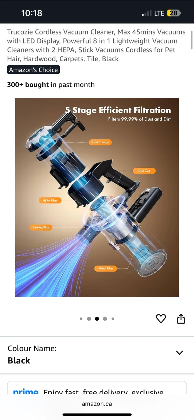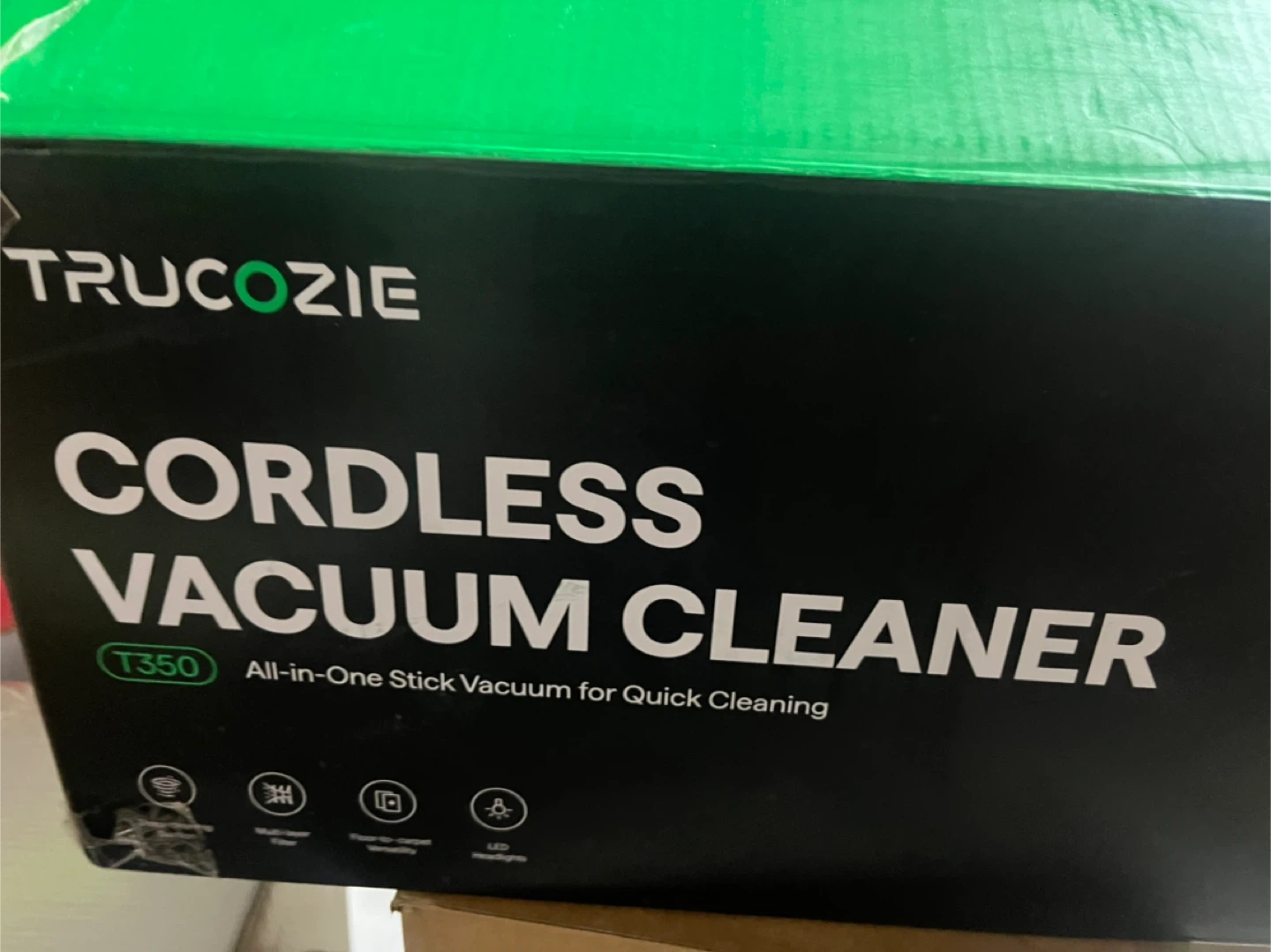 new Trucozie T350 Cordless Vacuum Cleaner for sale! It's still in its original packaging and has never been used. This all-in-one stick vacuum is perfect for quick cleaning and features efficient 5-stage filtration to capture 99.99% of dust and dirt. Also included are all the components that come with the vacuum!