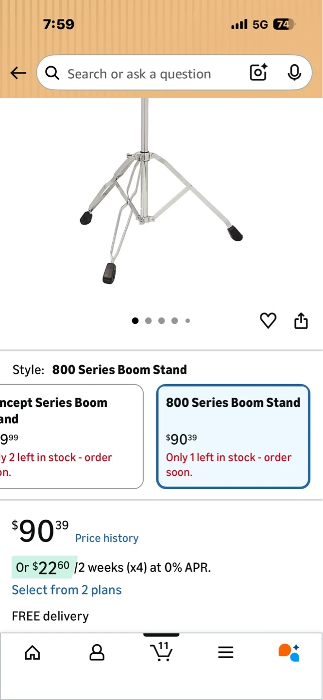 The price of a cymbal stand is $90 in-store (plus tax) or online.
