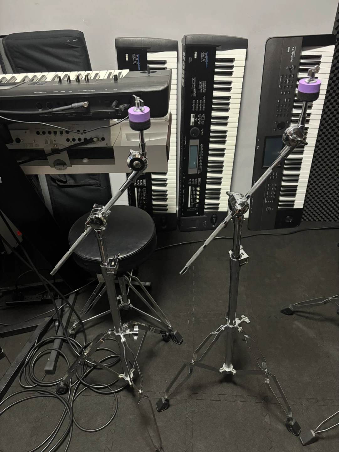 Selling a pair of DW 800 Series boom cymbal stands. These are chrome stands with adjustable boom arms and rubber feet. They're in good condition and ready for your drum kit!