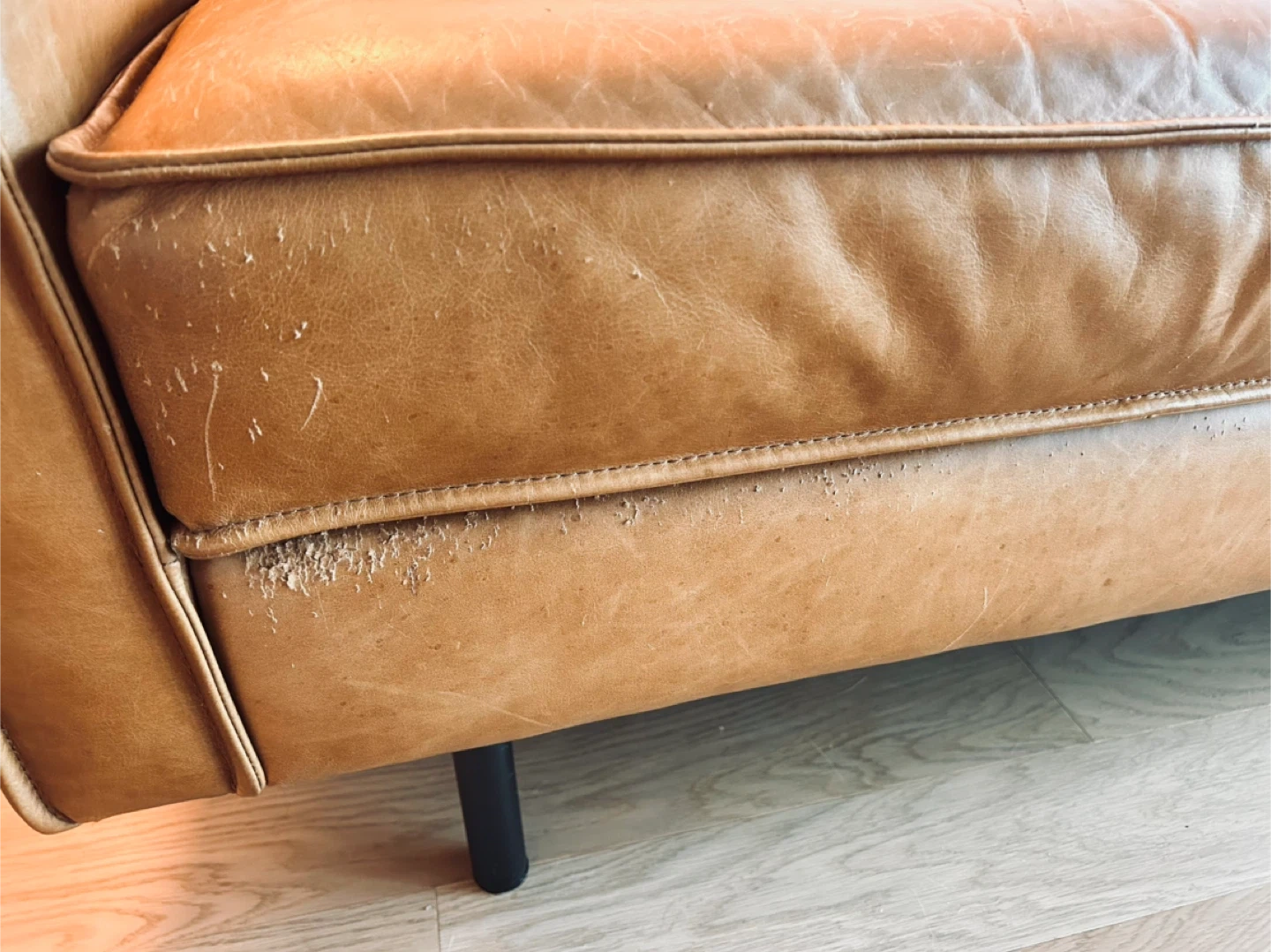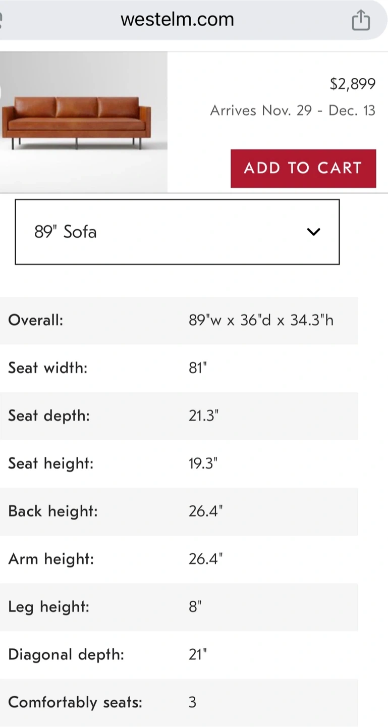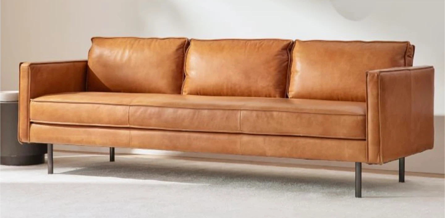 10Selling a leather sofa that has some wear and tear, as shown in the pictures. Still has a lot of life left and is very comfortable and durable. Genuine top-grain leather. Leather is a natural product. Variation in color and texture are inherent to each hide; no two pieces are exactly alike. Metal legs in a Burnished Bronze finish (legs are removable). High-gauge sinuous springs provide cushion support. Seat cushion has fiber-wrapped, high-resiliency polyurethane foam core. Seat firmness: On a scale from 1 to 5 (5 being firmest), it's a 4. Back cushions are fiber filled. Overall: 89"w x 36"d x 34.3"h Seat width: 81" Seat depth: 21.3" Seat height: 19.3" Back height: 26.4" Arm height: 26.4" Leg height: Diagonal depth: 21" $2,899 retail $450 - make an offer Greenpoint Brooklyn