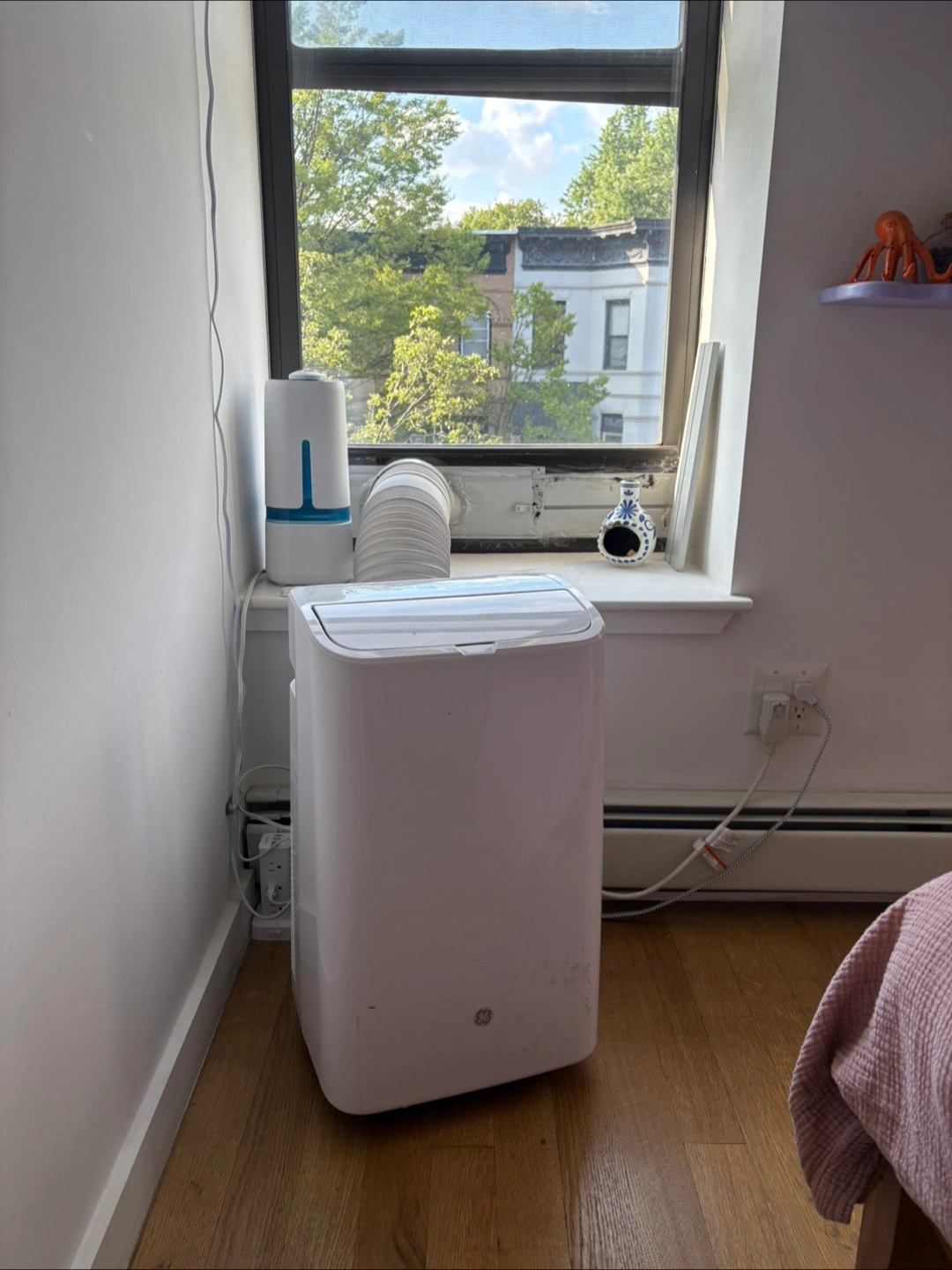 Selling a GE portable air conditioner! It's in great condition and ready to keep you cool. With all of its parts included. Perfect for small spaces and easy to move around. Switching it out for window AC because I moved to an Apt with less space - willing to trade