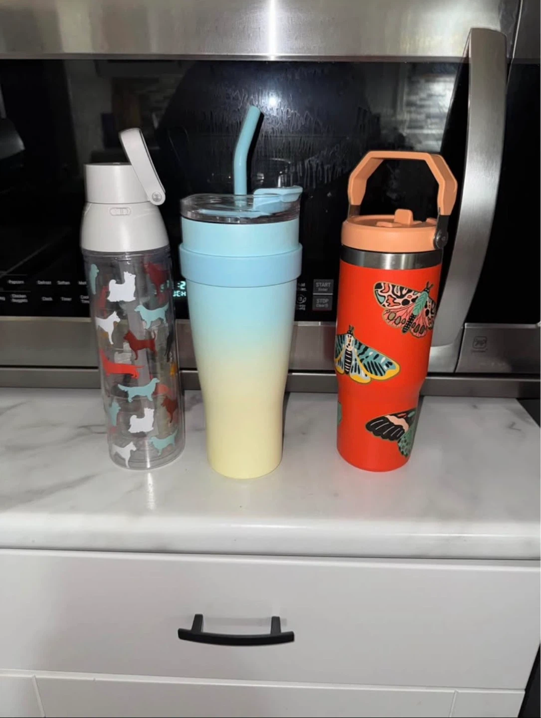 Buy & SellTumbler and Water Bottle SetTumbler and Water Bottle SetFreeSet includes a blue to yellow gradient tumbler with straw, a clear water bottle with dog print, and an orange tumbler with butterfly design. All are reusable drinkware.ConditionLike newWHERE TO MEETCheck LocationView MapSELLERverifiedLisaHoliday Hills811 review0 chats·0 favorites·4 viewsSEND CHAT TO SELLERHi Lisa! I’m interested in your listing.Hi Lisa! I’m interested in your listing.Get the Karrot app to chatSign In to chat