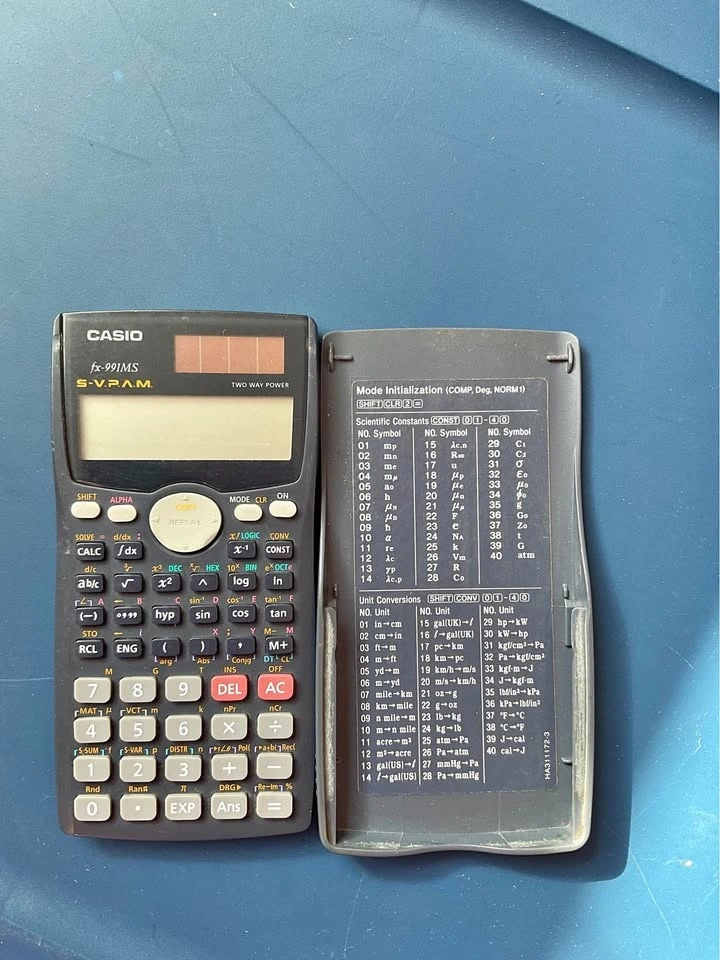 Handy Casio fx-991MS scientific calculator with two-way power. Comes with a hard case for protection.