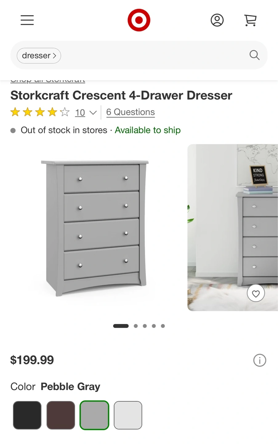 Storkcraft Crescent 4-Drawer Dresser - Pebble Gray