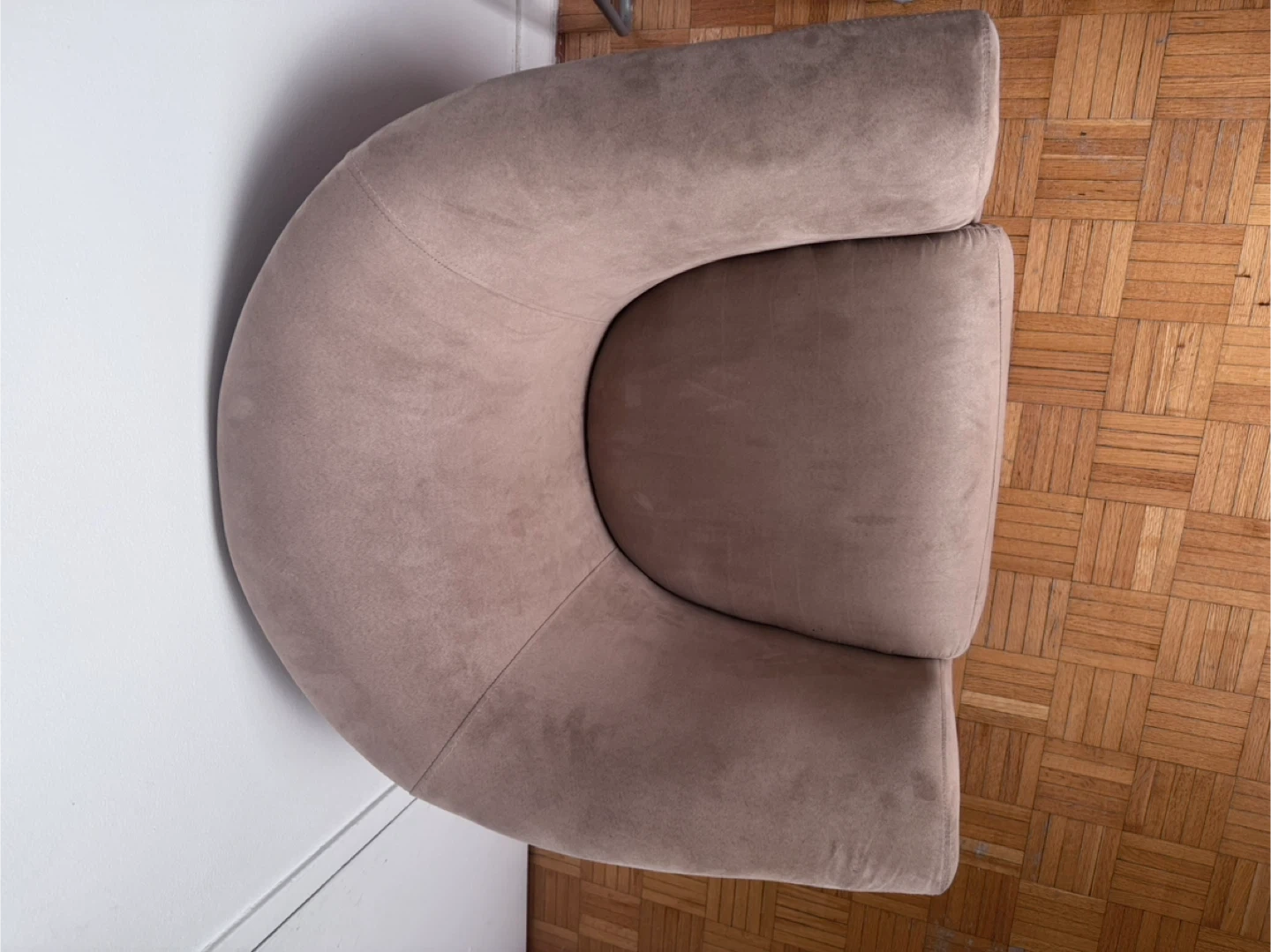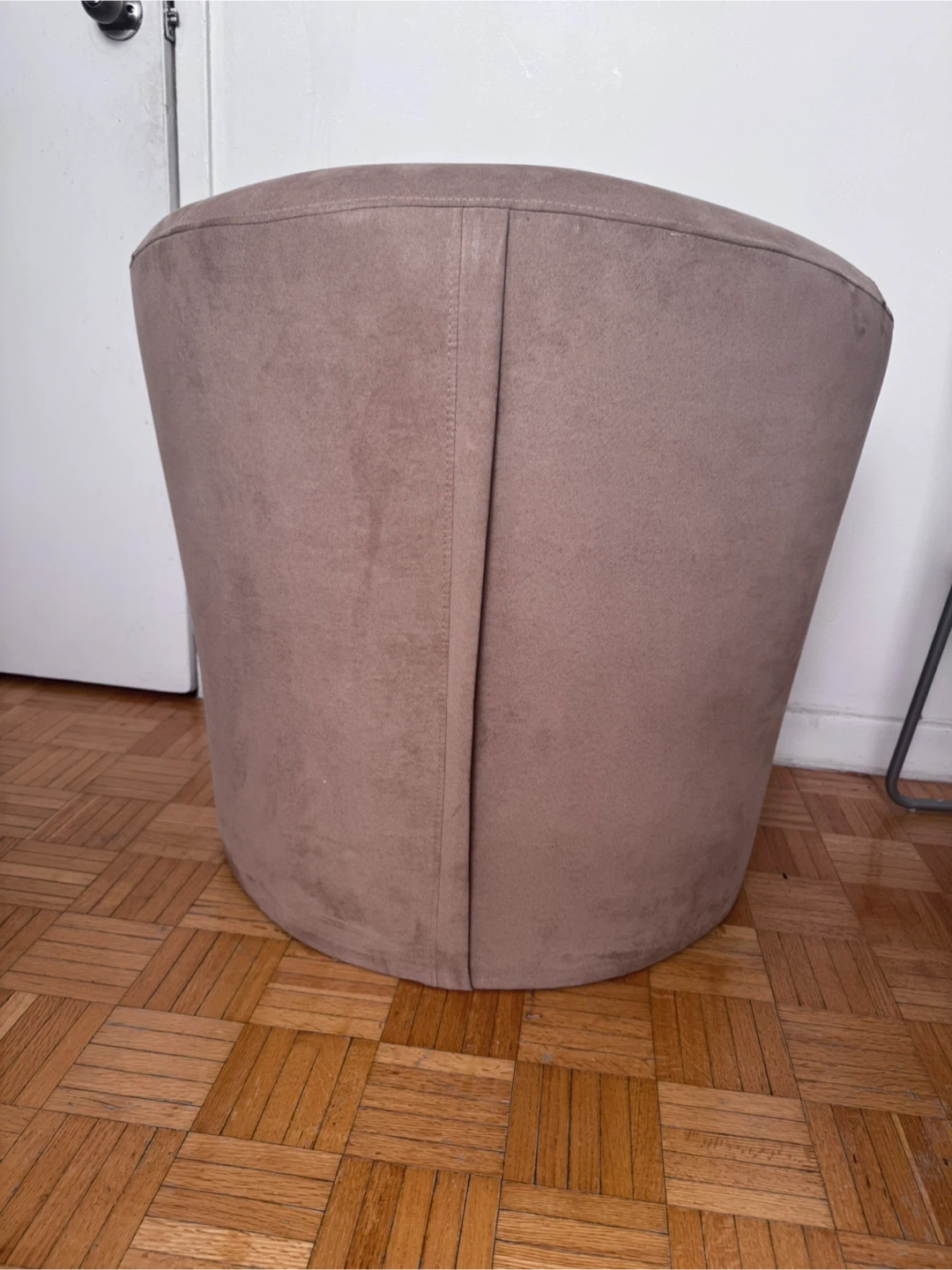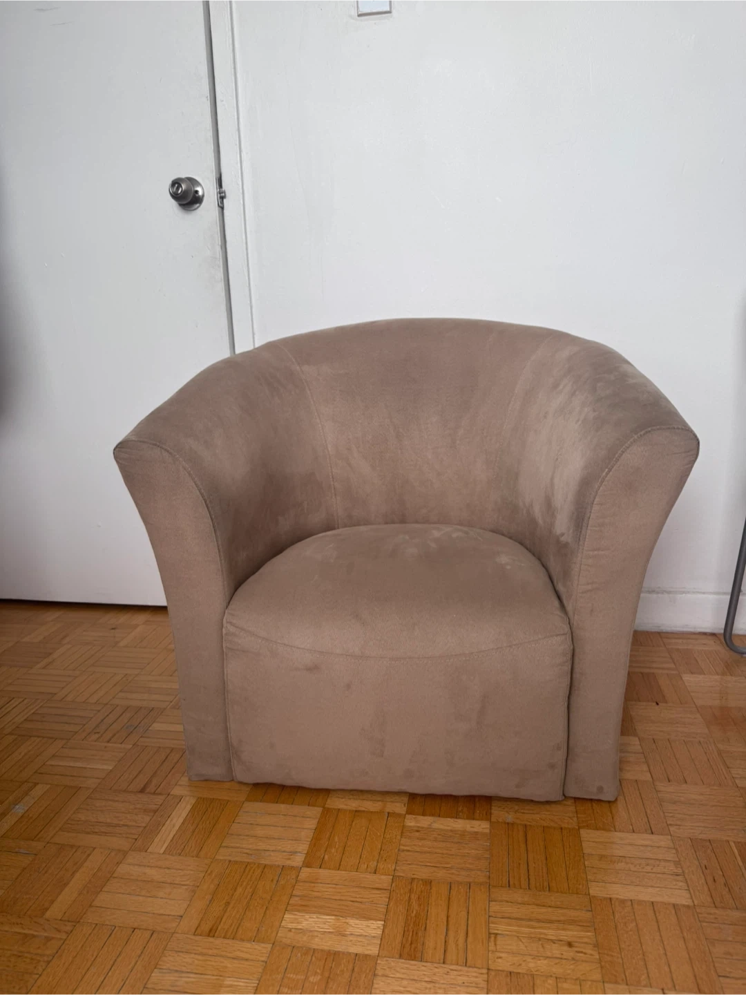 Selling a comfy barrel accent chair! It's in great shape and would look perfect in a living room or bedroom. The neutral beige colour goes with just about anything. The colour change is just with the touch it can adjust to a dark colour from beige when you touch it in a specific direction and all ready to negotiate your offering!