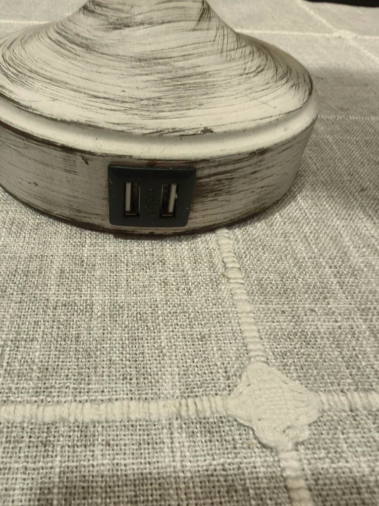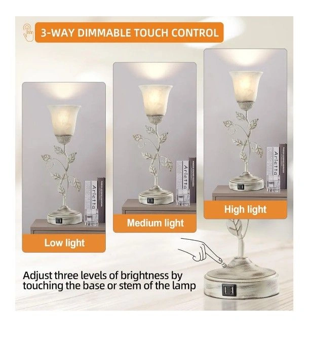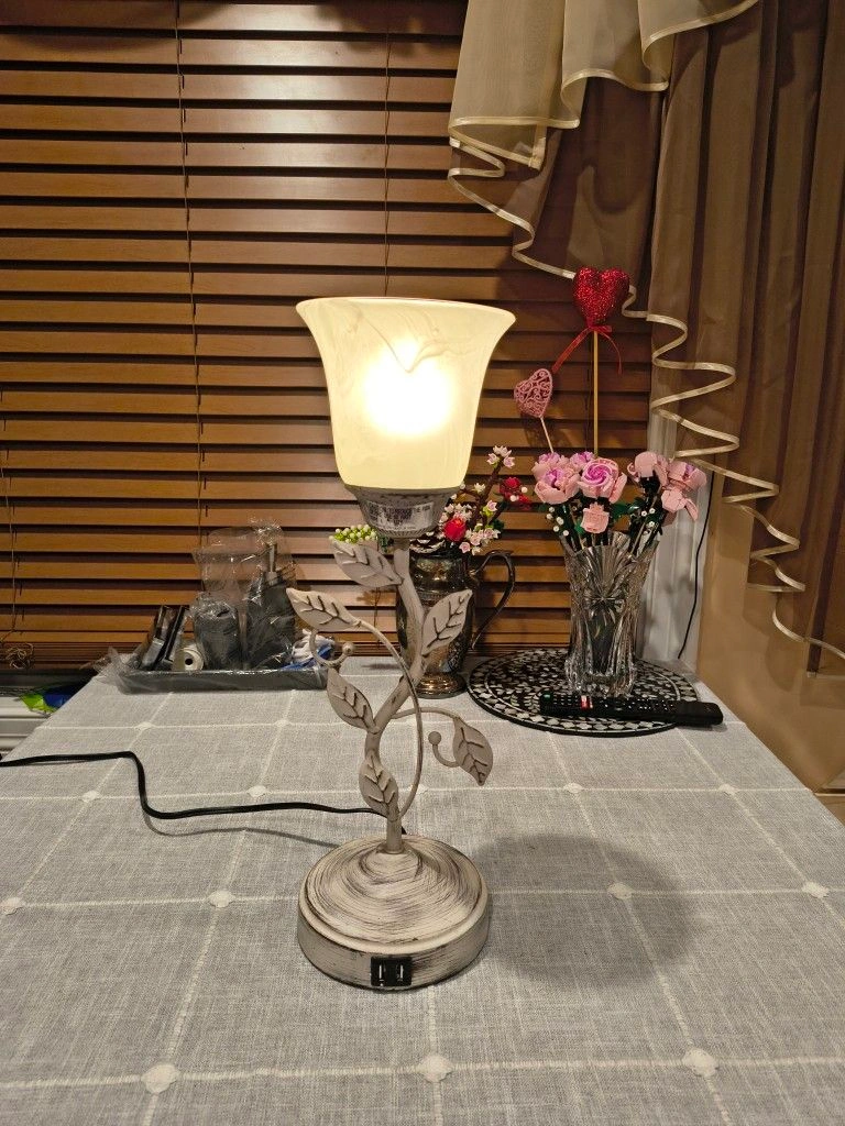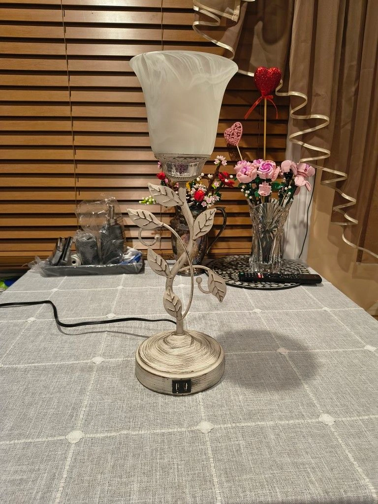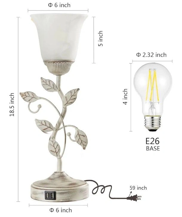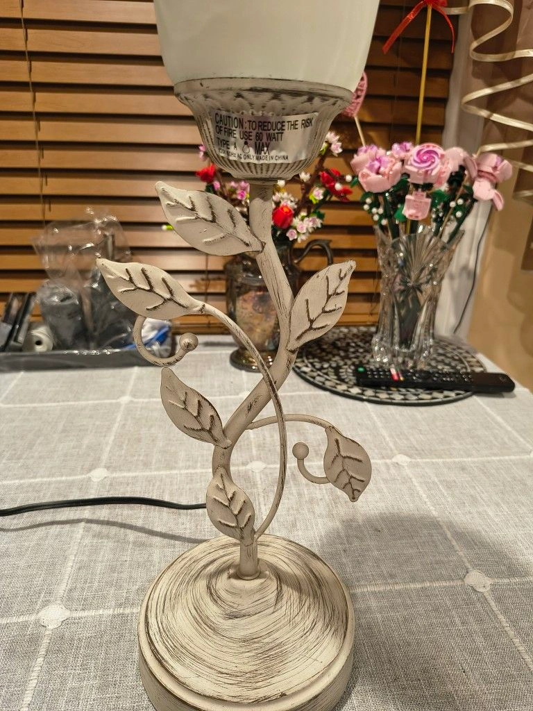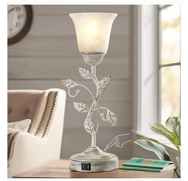 This leaf table lamp is in vintage washed white color, showing a retro and elegant style. Pick up in River Grove IL. Features: Dimmable, Outlet included, Touch light. Color: White. Style: Rustic. Type: Table lamp.
