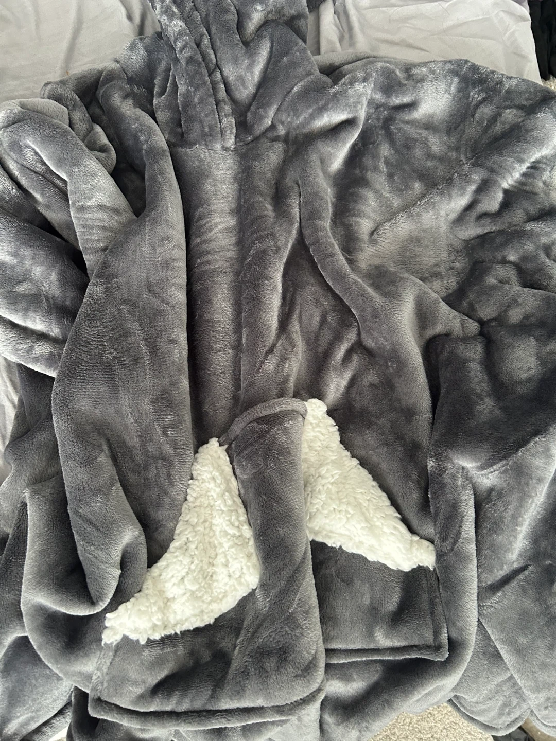 Gray Plush Hooded Blanket