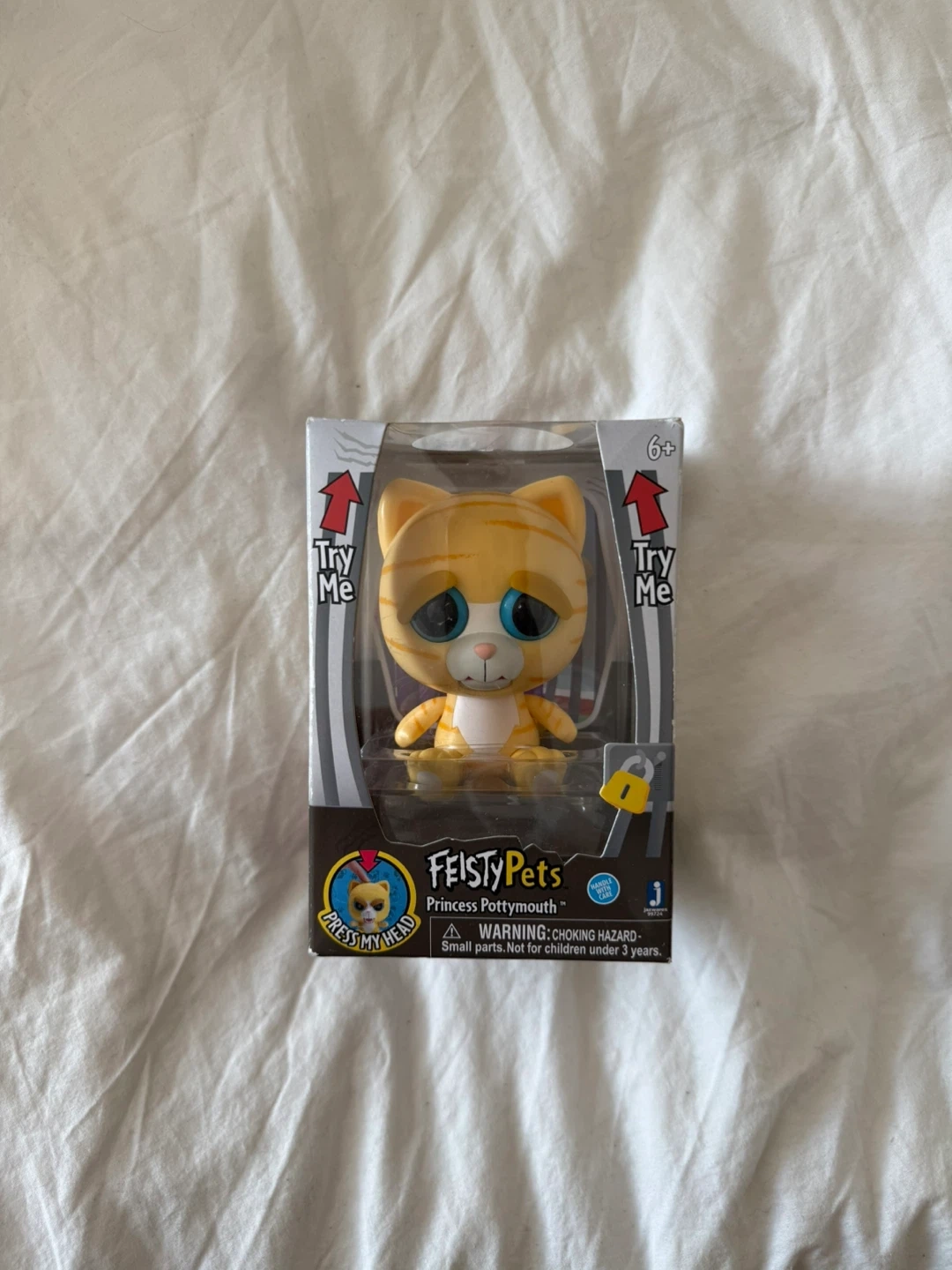 Feisty Pets Princess Pottymouth interactive cat toy. It changes expressions when squeezed.