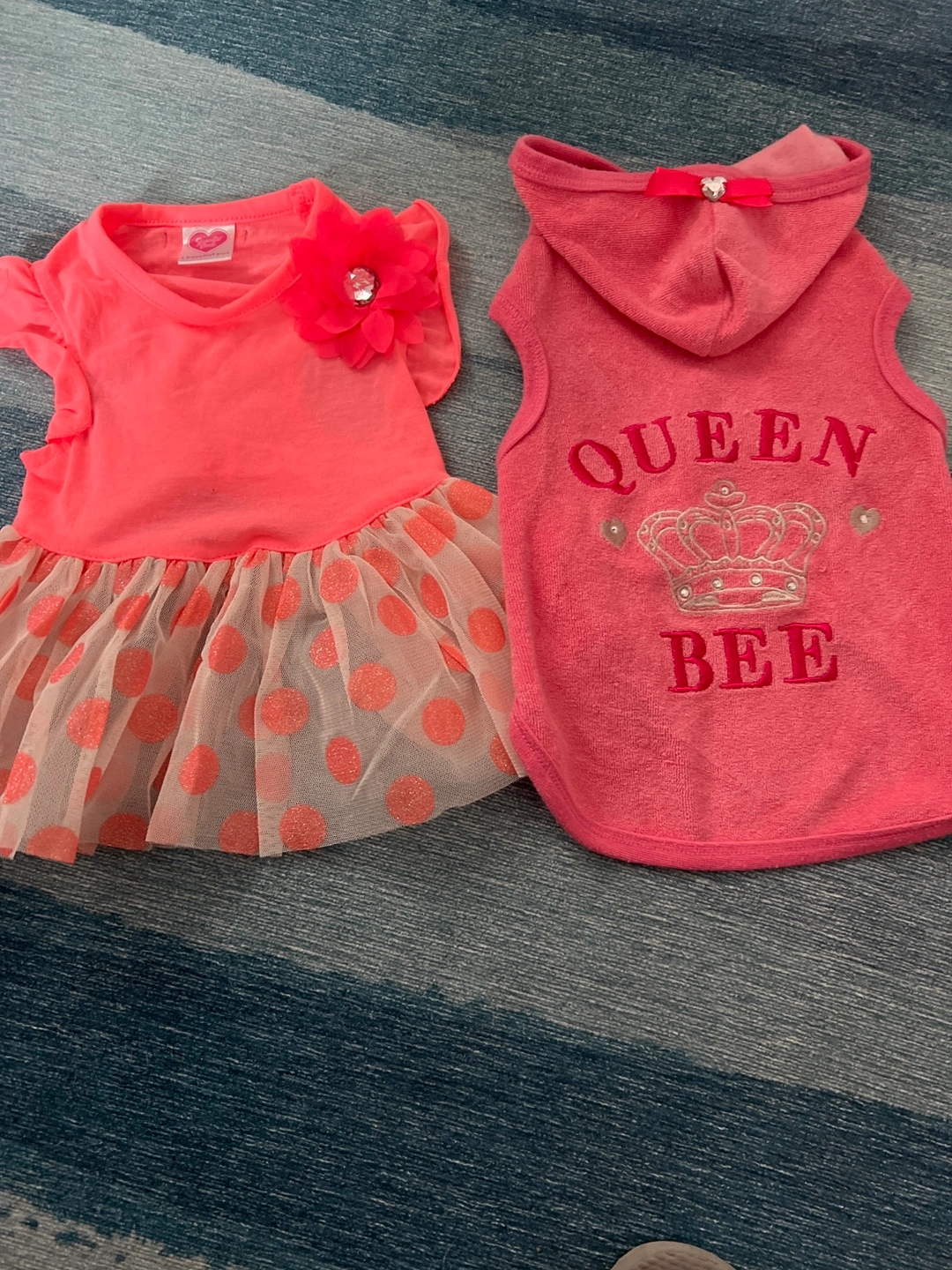Adorable coral pink outfit set. Includes a dog dress with tulle overlay and a matching dog hoodie. Size Small