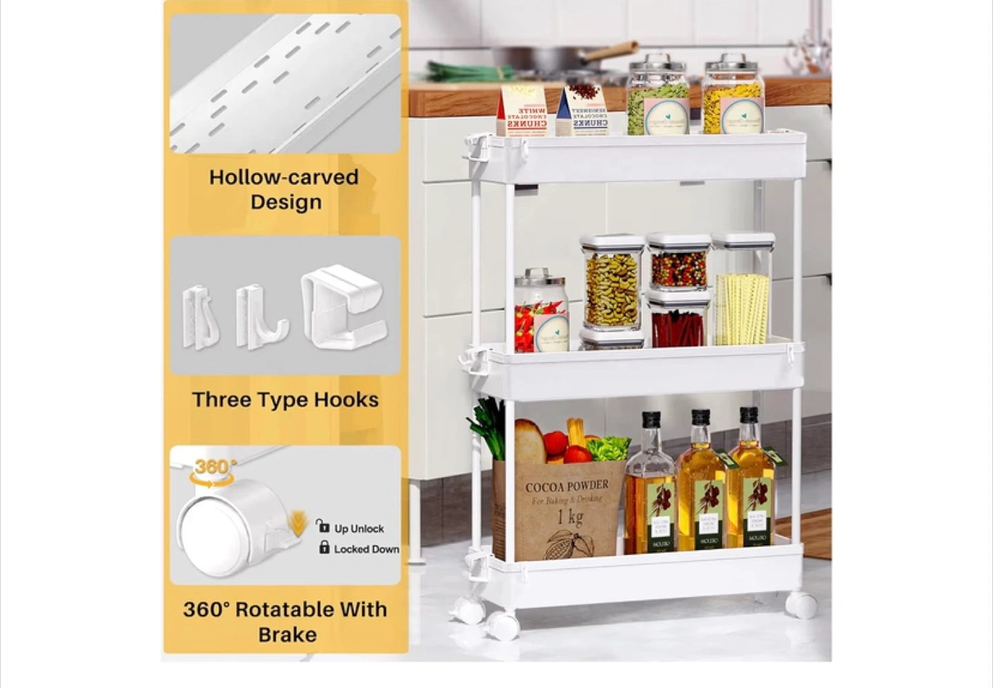 SPACEKEEPER 3-Tier Rolling Storage Cart