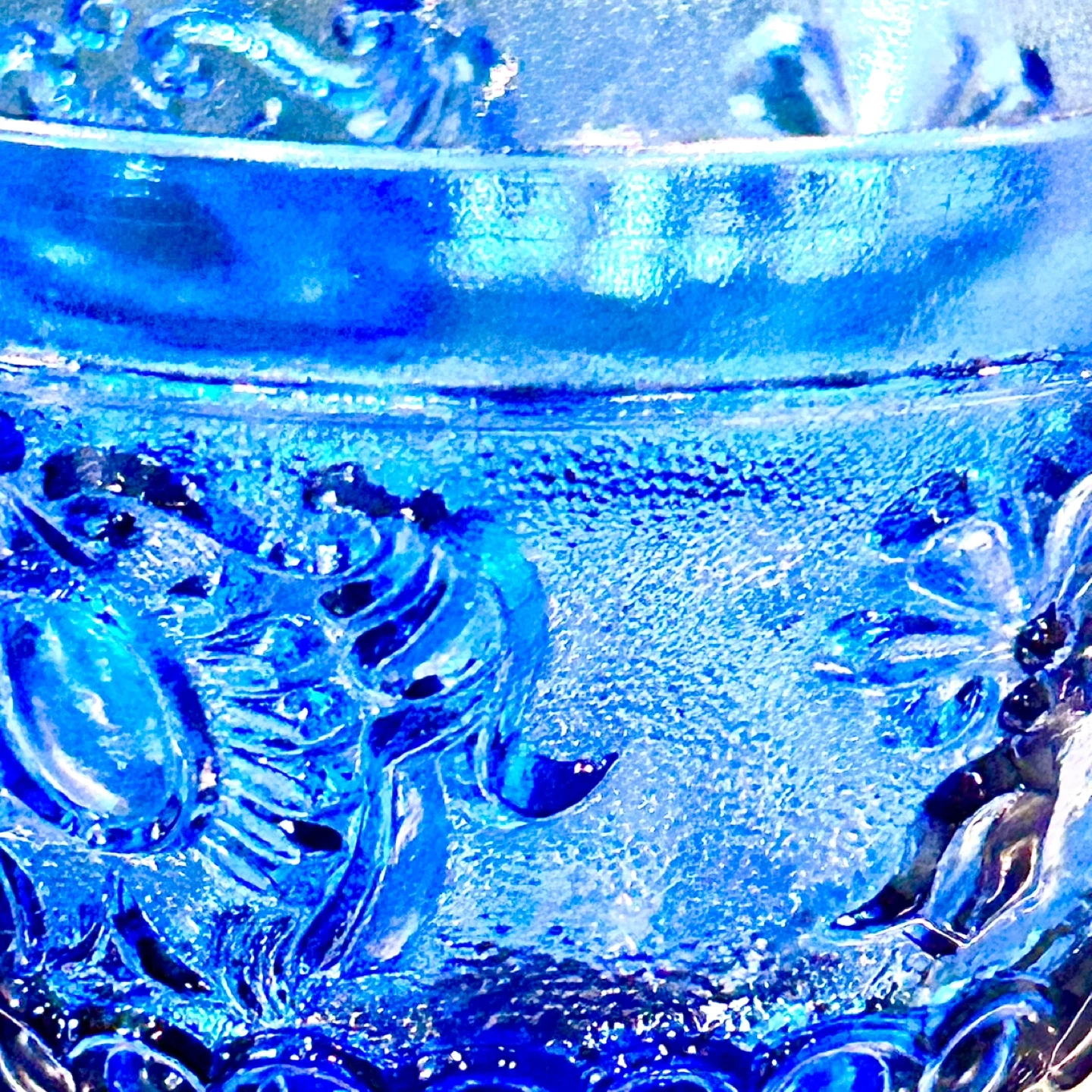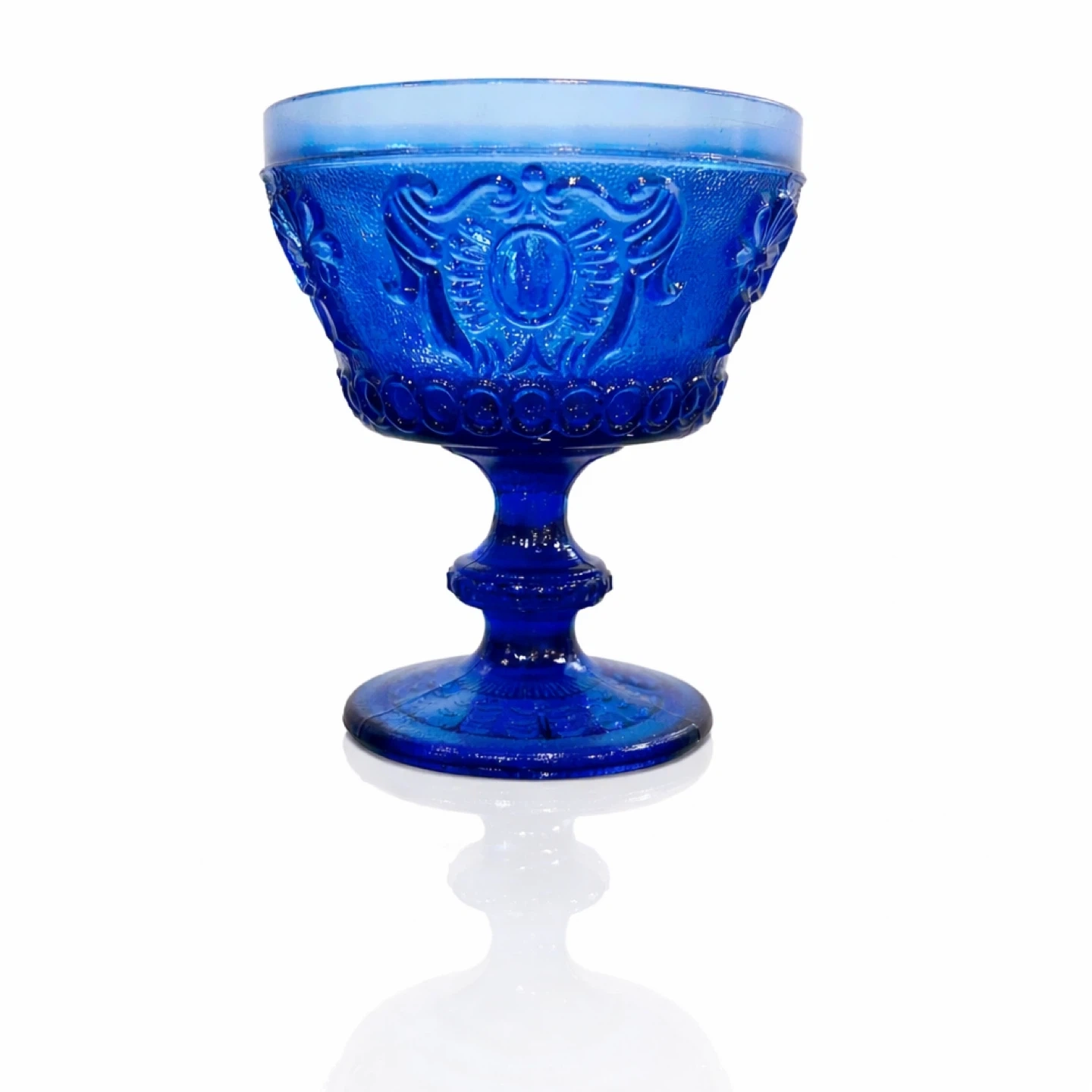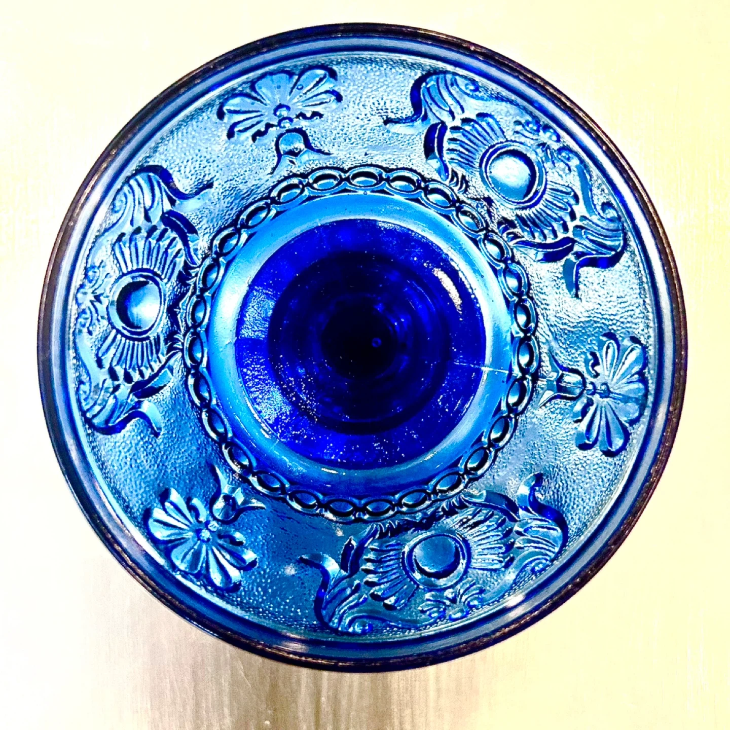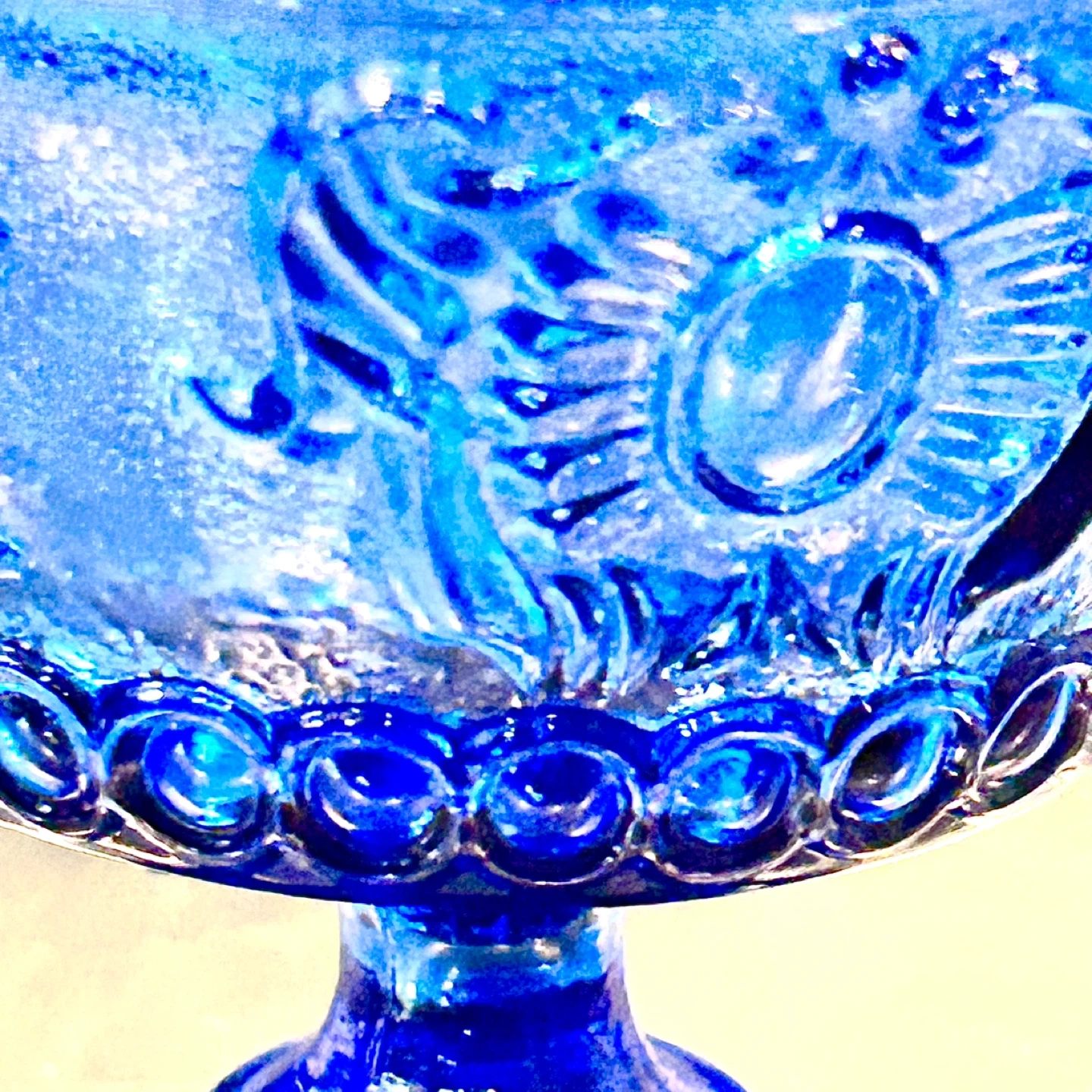 Antique Cobalt Blue Pressed Glass Pedestal Compote Bowl