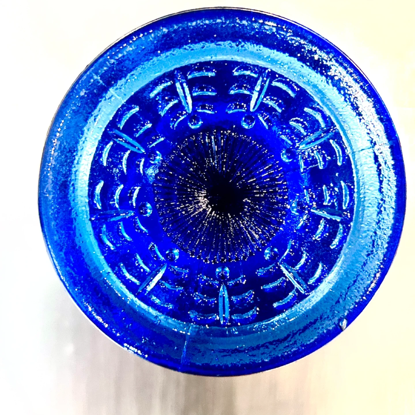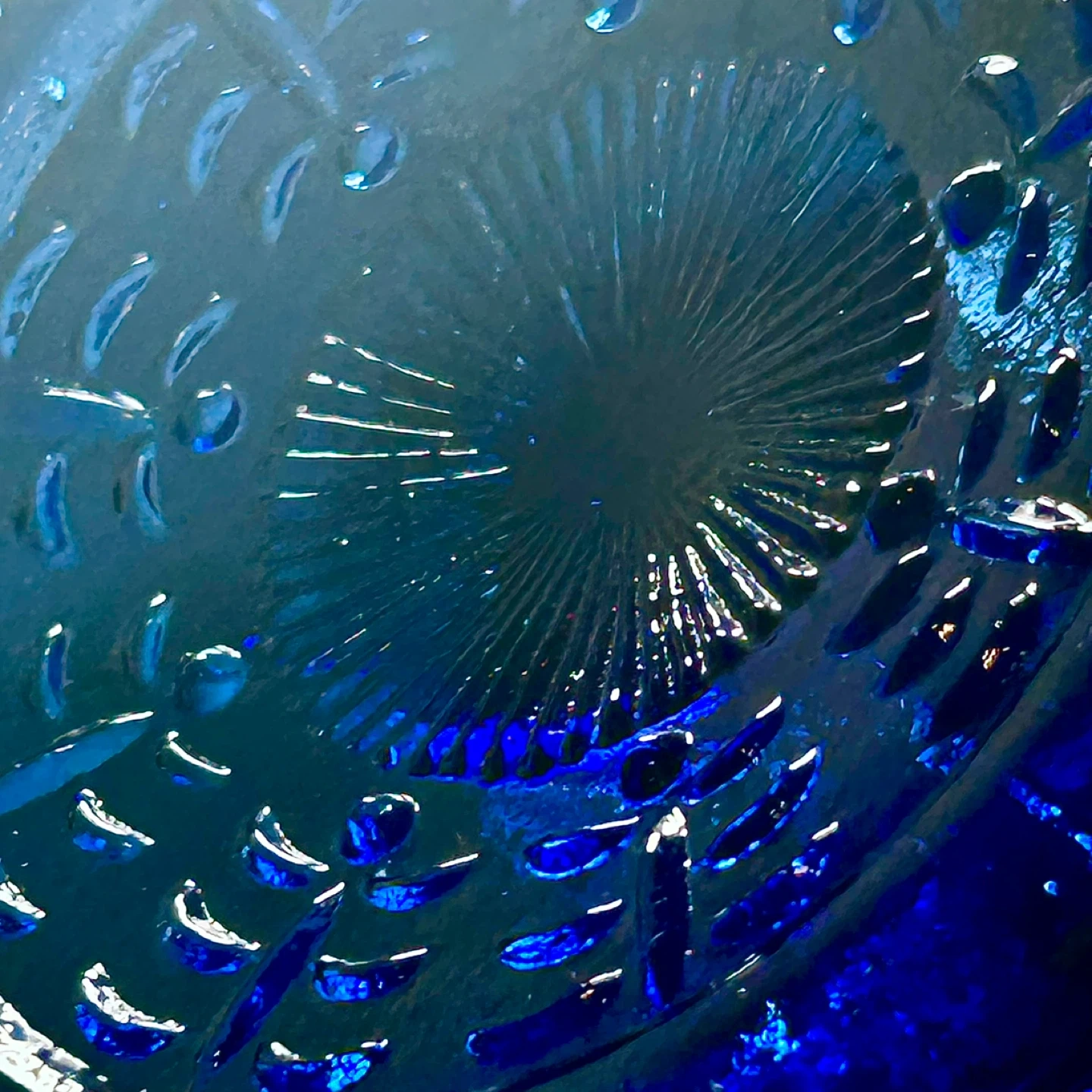 A striking antique cobalt blue pressed-glass pedestal compote, dating to the late 19th to early 20th century, distinguished by its bold relief decoration and saturated, jewel-like color. The bowl is densely molded with classical Victorian-era motifs, including oval medallions framed by radiating foliate forms, shell details, and a continuous beaded band encircling the lower body. The glass displays a deep, inky cobalt tone with excellent clarity and weight. The interior base features a pronounced radiating starburst mold pattern, while the exterior shows crisp relief contrasted against finely stippled ground textures—hallmarks of quality period pressed glass. Vertical mold seams are visible, fully consistent with antique pressed manufacture and confirming this is not later hand-blown or modern production. The form rises on a substantial baluster stem and terminates in a wide, stable foot, giving the piece strong visual presence and making it ideal as a tazza-style centerpiece, serving compote, or cabinet display object. The weight and mold definition place it above lighter, mass-market pressed examples. ⸻ Dimensions & Weight • Height: 4 5/8 inches • Mouth diameter: 3 7/8 inches • Base diameter: 2 3/4 inches • Weight: 0.692 pounds ⸻ Condition Excellent antique condition. No chips, cracks, or hairline fractures observed. Only minimal surface wear consistent with age and original manufacture. Relief details remain sharp and well defined. Please review close-up images for full surface and mold detail. ⸻ What it is (and what it’s not) This is an authentic antique pressed-glass compote produced circa late 1800s–early 1900s. It is not hand-blown, not cut crystal, and not a modern reproduction. No maker’s mark is present; attribution is based on form, color, and mold characteristics typical of period American pressed glass. ⸻ Attribution & Value Disclosure Unmarked pressed glass of this era was produced by multiple firms using related mold vocabularies. Any stylistic or regional references are offered as informed context rather than definitive maker attribution. antique cobalt glass cobalt blue compote pressed glass pedestal bowl victorian pressed glass antique tazza bowl cobalt glass centerpiece 19th century glass american pressed glass ornate glass compote collector cobalt glass antique glass bowl decorative pedestal bowl display compote bowl victorian table glass deep cobalt blue glass antique serving compote architectural glass form cabinet glass display heavily molded glass estate glass collectible