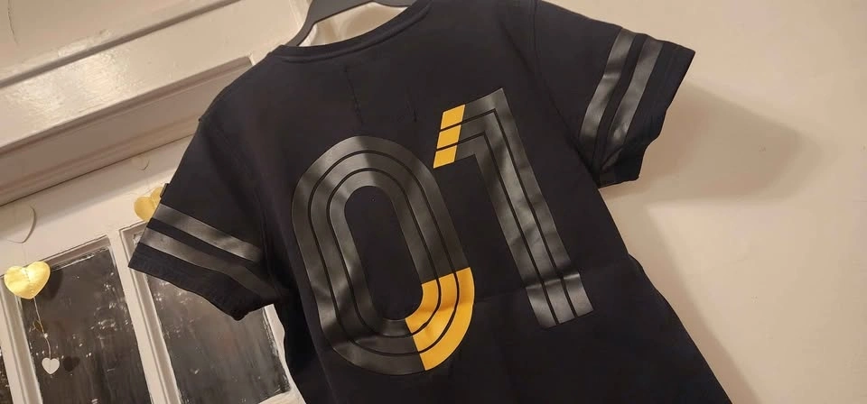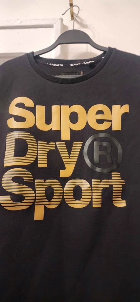 This classic crew neck T-shirt features a large rubber Superdry Gold Award logo on the front and back and a striped design on both sleeves.