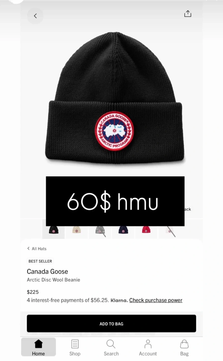 This is a Canada Goose Arctic Disc Wool Beanie. It's black and made of wool. Perfect for keeping warm!