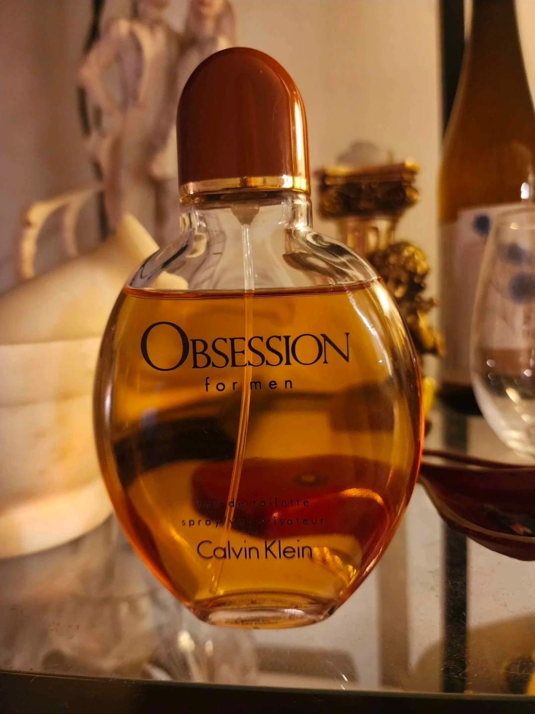 Vintage Formula 125ml(4 oz) bottle of Calvin Klein Obsession for Men eau de toilette spray. The bottle is estimated to be from 1998, that was in my late grandfathers collection.