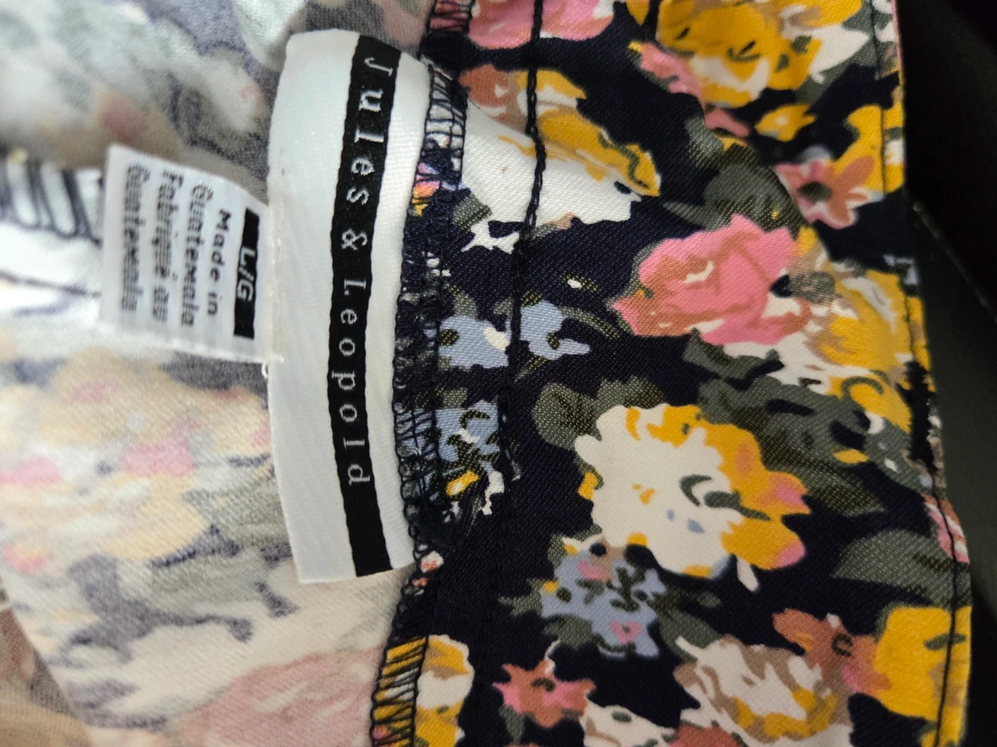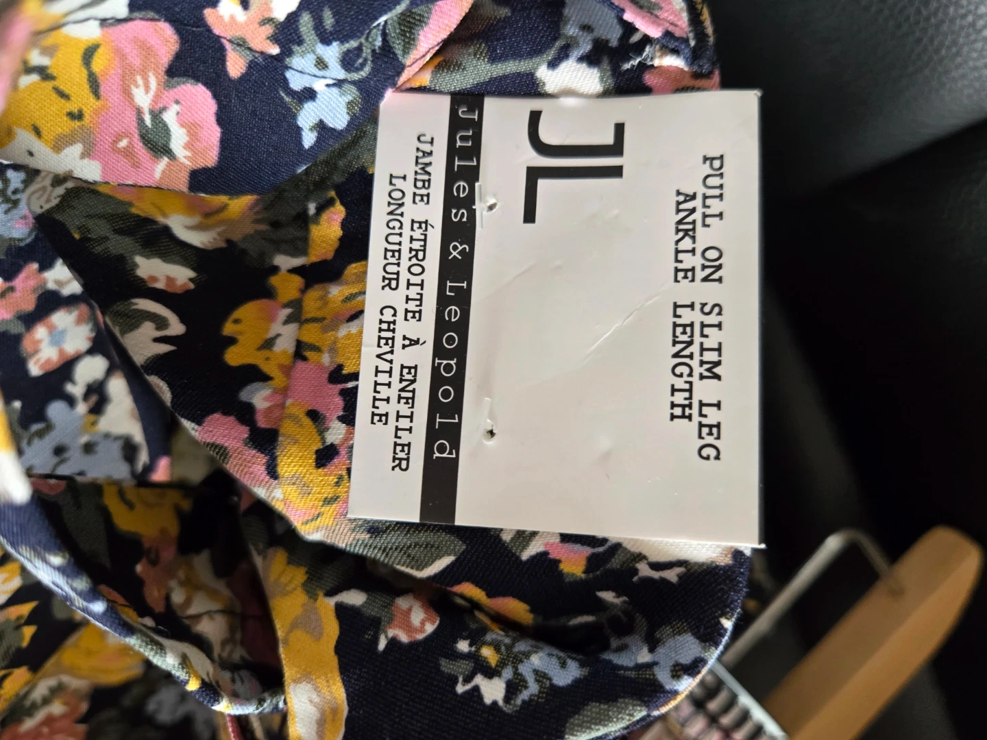 Jules & Leopold pull-on slim leg pants with a floral print. Ankle length style. Made in Guatemala. Size is large. Fits women size 10/12. Has elasticine. NWT