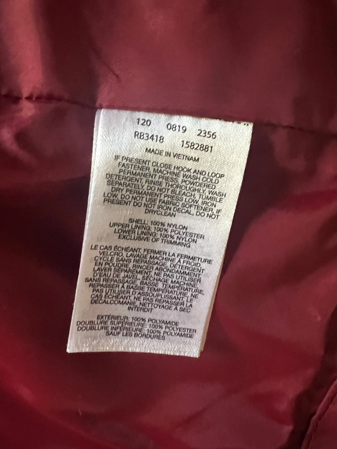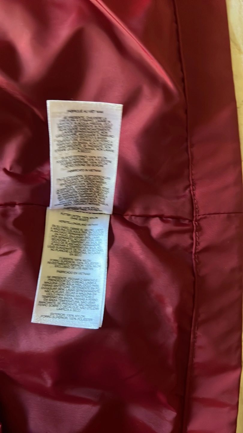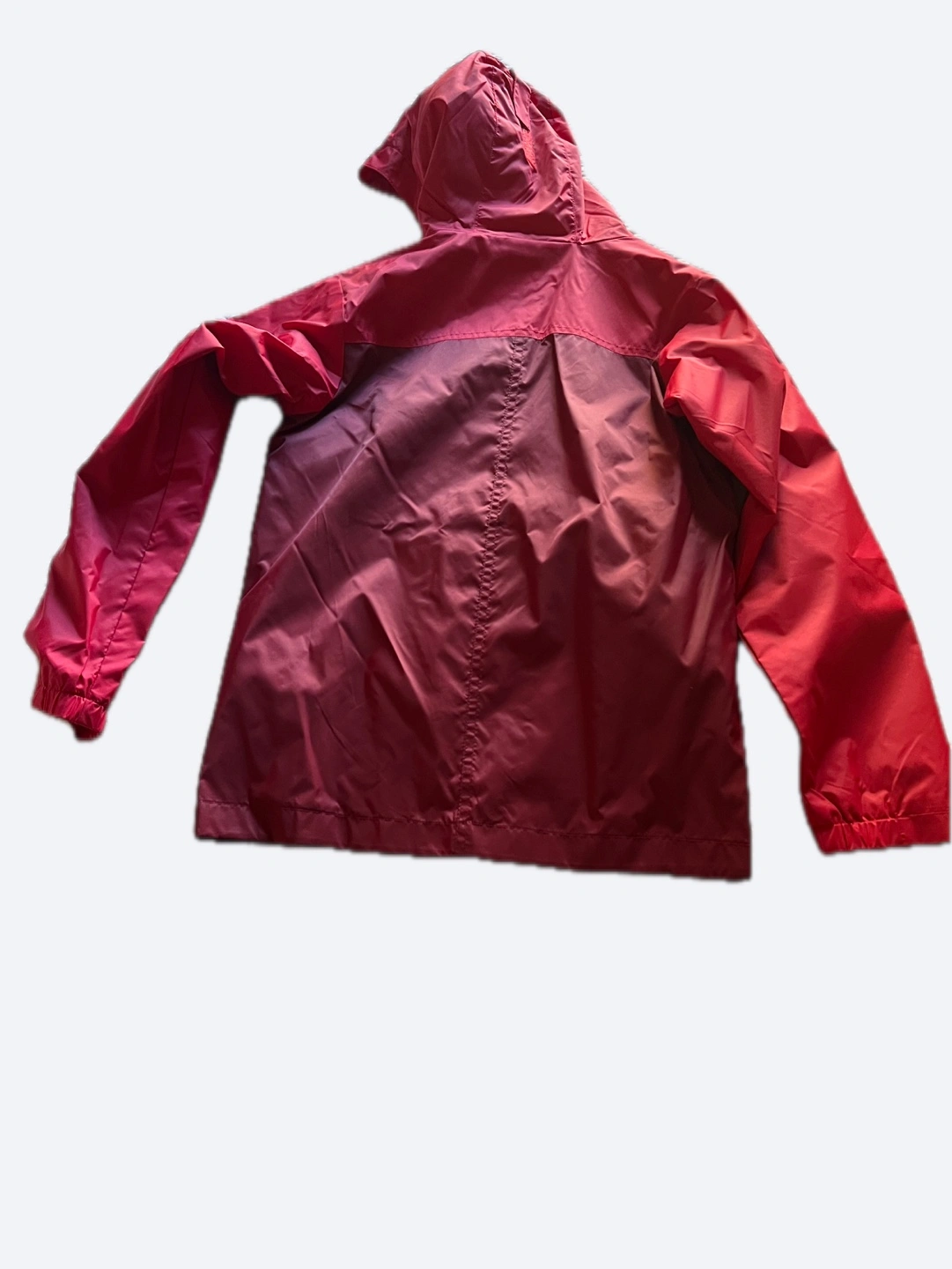 Red hooded rain jacket. Fleece lined hood. Size Medium. Two front pockets. Zip front closure. Great for rainy days!