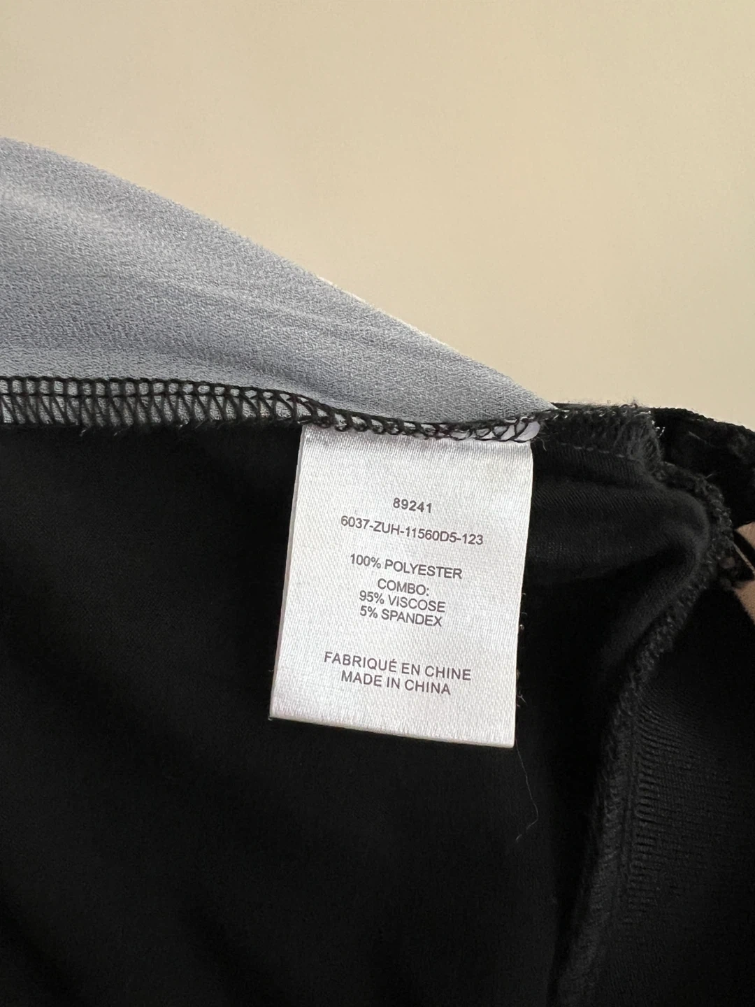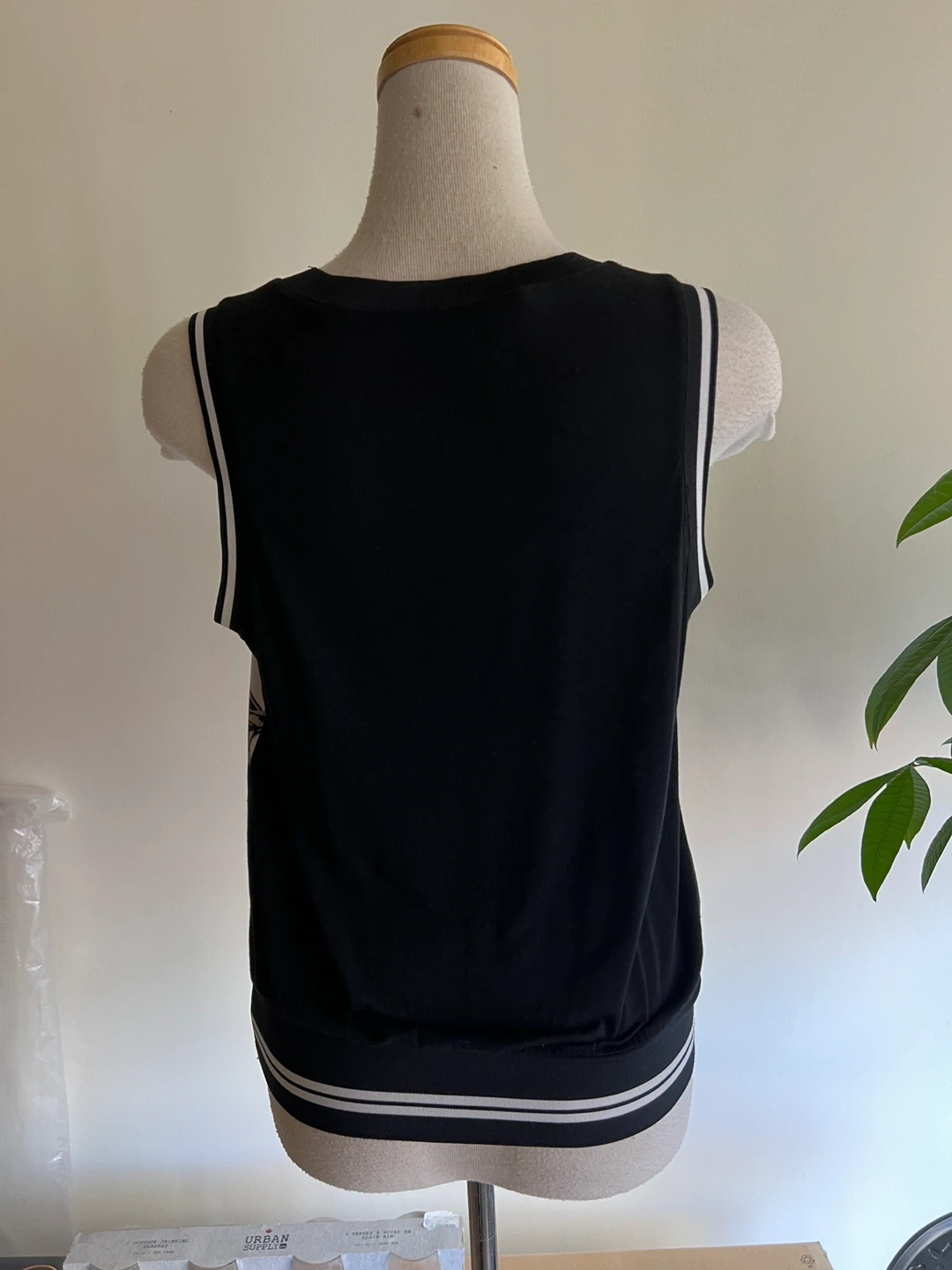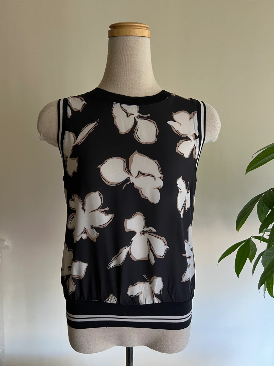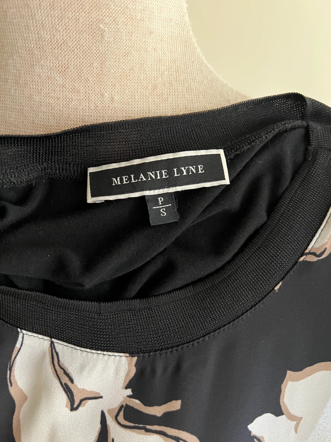 This is a sleeveless top from Melanie Lyne. It's made of 100% polyester with a combo of 95% viscose and 5% spandex. Worn a few times. Excellent used condition.