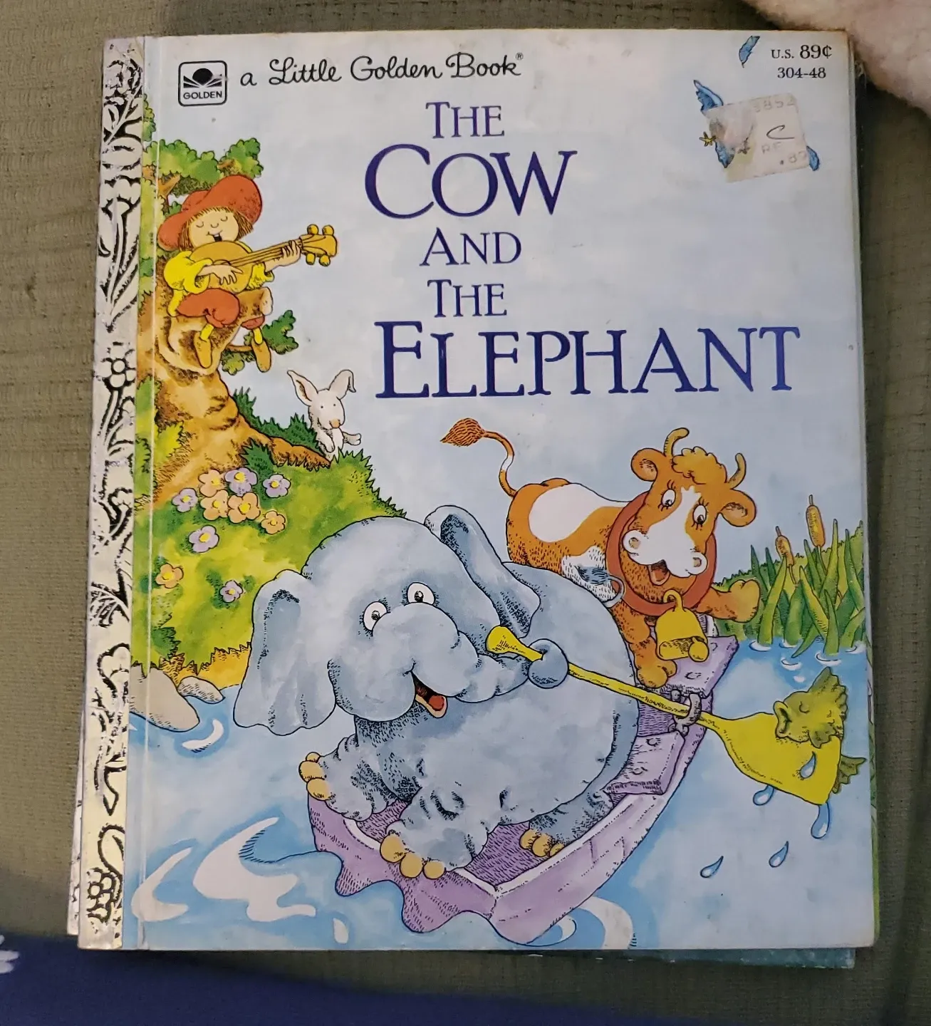 A classic Little Golden Book titled 'The Cow and The Elephant.' It's a paperback children's storybook. This is a fun read for young children!