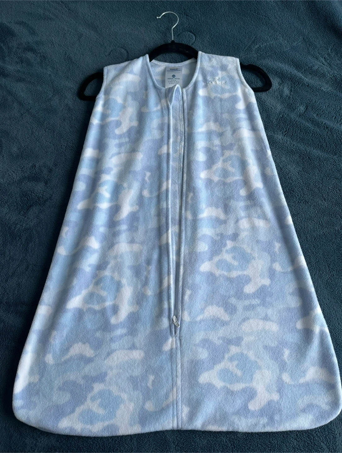 Keep your little one cozy with this Halo Sleepsack wearable blanket! It's in a lovely blue cloud pattern and size medium. Perfect for a safe and snug sleep!