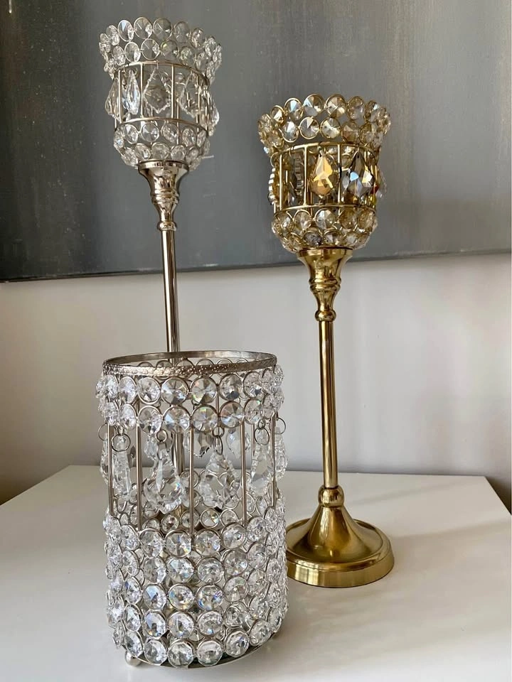 Listing is for the TALL candle holder only. The other candle holders in the last picture are available in a different listing. Round candle holder $25, Tall candle holder $20, Medium candle holder $25, or all three for $50. Only used as decor, not a candle holder. Dimensions: 18"H x 4.5"D. Weight: 1.5lbs.